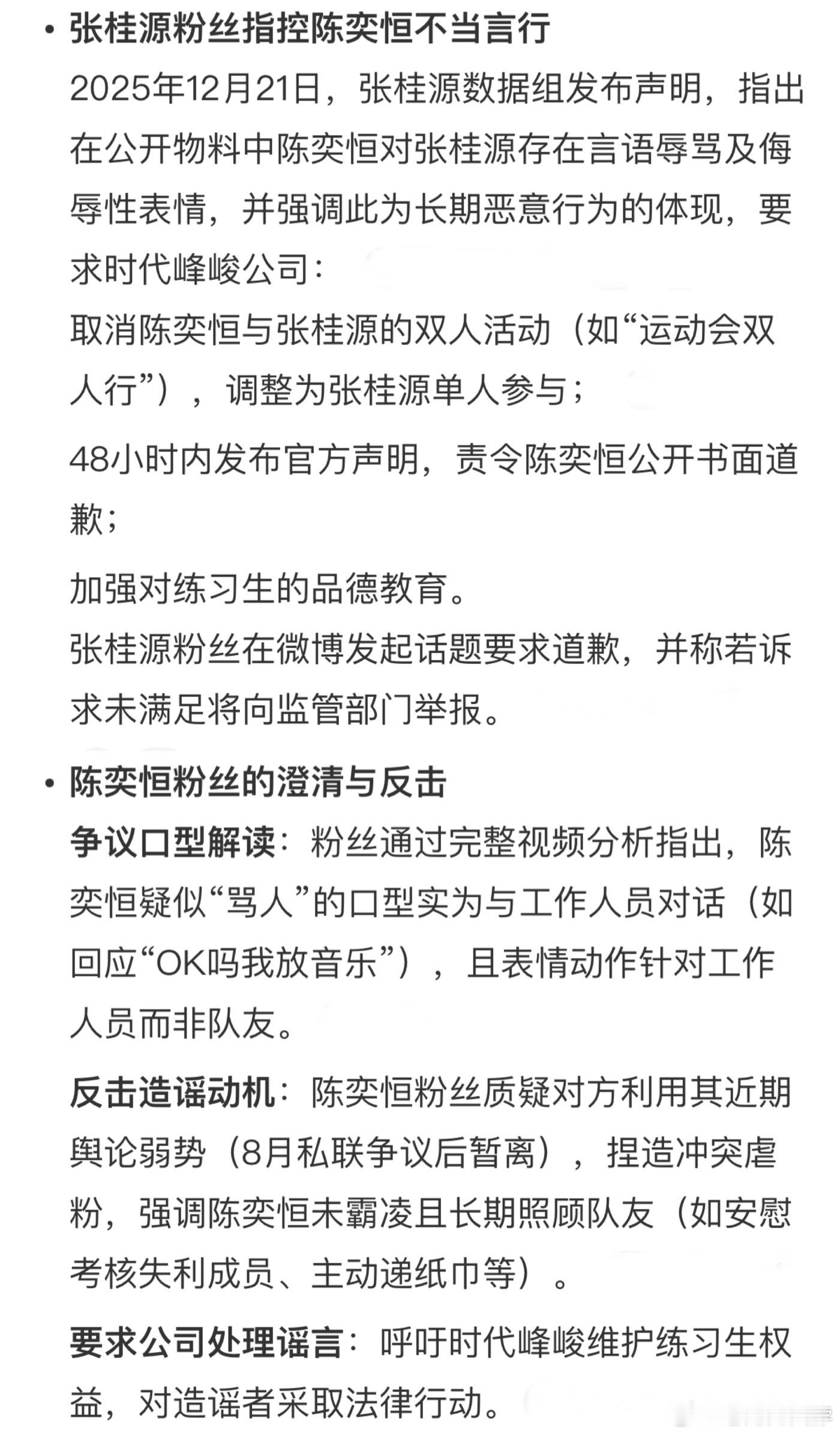 四代张桂源粉丝站发文,要求陈奕恒向张桂源道歉,图(2)为双方粉丝缘由及解释陈奕恒