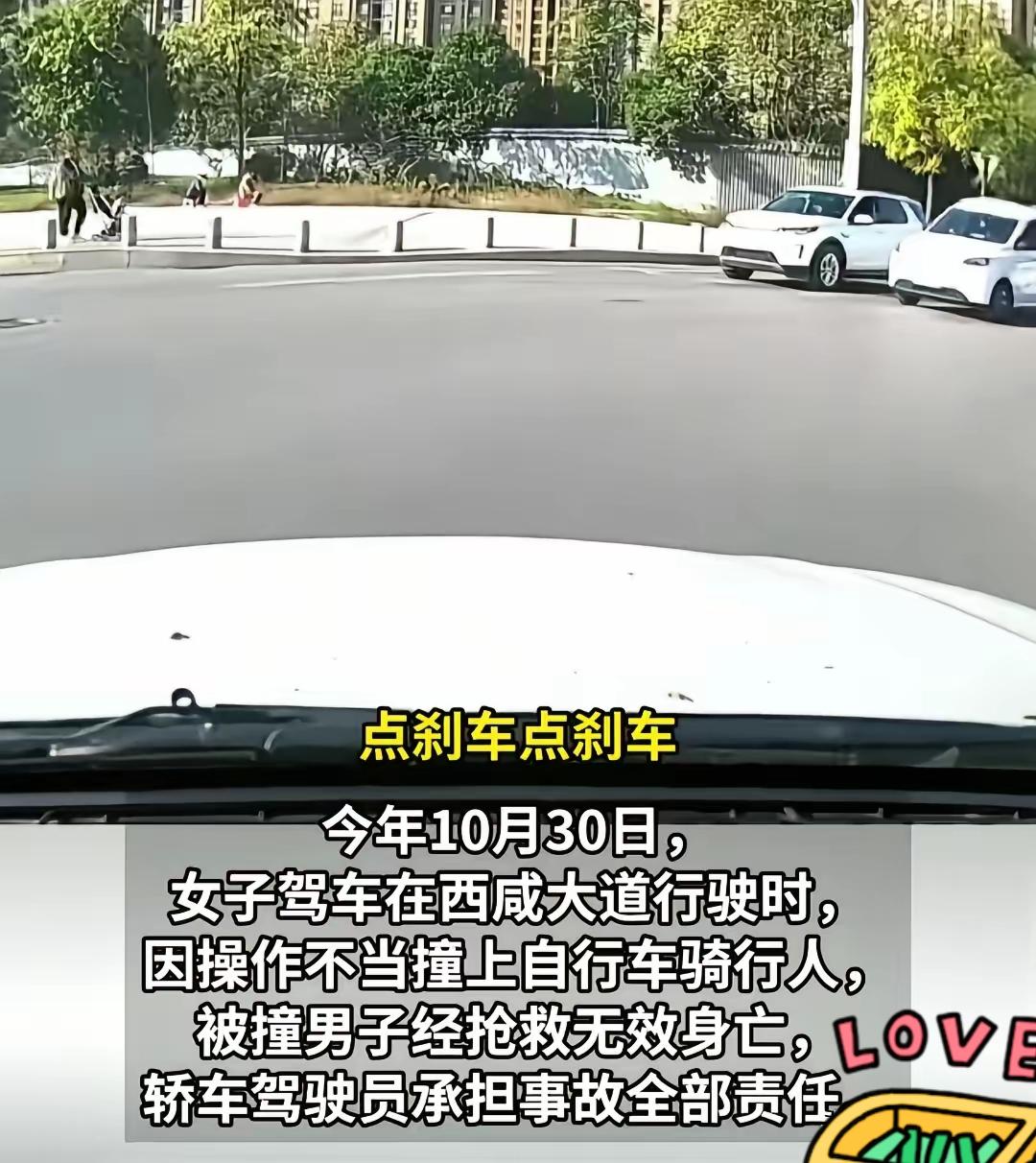 太可惜了!西安女子开车撞死骑行男子,从行车记录仪视频看,这场悲剧的发生原本可以避免 行车记录仪里的画面看得人揪心!丈夫在副驾嗓子都快喊哑了,一遍遍吼着“点刹车”,可握着方向盘的女子早就慌了神,车子像失控的野马在路面乱蹿。这时候光靠嘴说有啥用?但凡丈夫伸手拉一下手刹,哪怕是电子手刹,也能把车逼停啊!多少人都误以为电子手刹不管用,这误区真的能要命! 再看那位骑行的大哥,眼看车子冲过来,前方还有隔离桩挡着,他和车明明还有四五米的缓冲距离。这时候要么刹住车原地等,要么猛蹬几下冲过去,偏偏他在两车快要碰上的瞬间,反手捏了自行车刹车! 估摸着女司机刚拿驾照没多久,车都没摸熟就敢独自上路,连个陪练都不找,这哪是开车,简直是拿生命开玩笑!隔离桩的存在更是把生还的路堵死了,两边夹击之下,悲剧瞬间发生。 一条人命没了,两个家庭毁了,全是因为一个个本该规避的失误。你说,要是当时多一个人做出正确反应,这场悲剧还会发生吗?