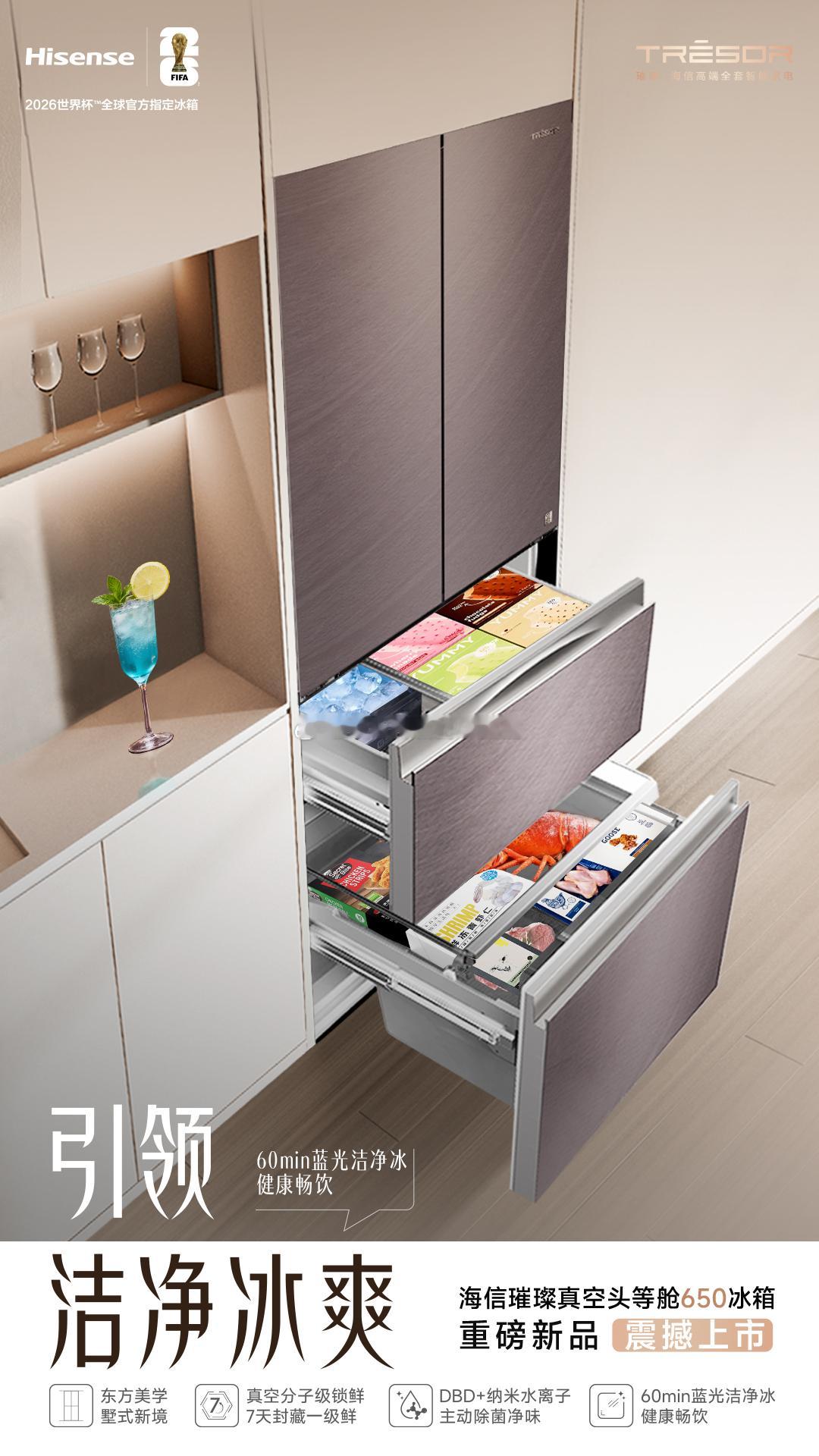 海信世界杯定制产品亮相 四年一度的绿茵盛宴,值得最顶级的观赛配置!🏆海信为2026世界杯定制的全阵容产品,今日正式集结亮相!或许你无法亲临现场,但你的观赛体验,一样可以“顶配”!从画质封神的ULED电视,到“一秒入冬”的清凉空调,再到锁住啤酒爽感的冰箱…每一件,都为沉浸式看球而生。原来,在家也能拥有赛场般的仪式感!