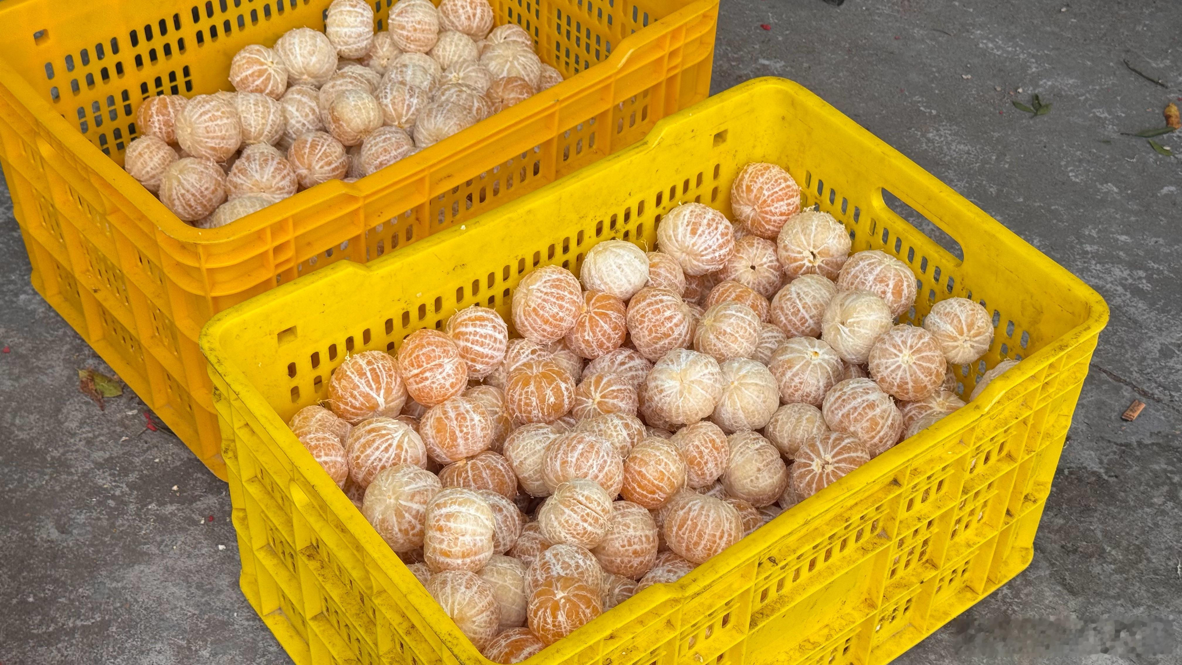 这是我们正常的新会陈皮冬柑最适合做陈皮的每家每户都是掰开果皮自己晾晒晒好以后的陈皮,我们煮饭、煮汤、煮糖水都会加小时候热气上火,都说加快陈皮就容易好