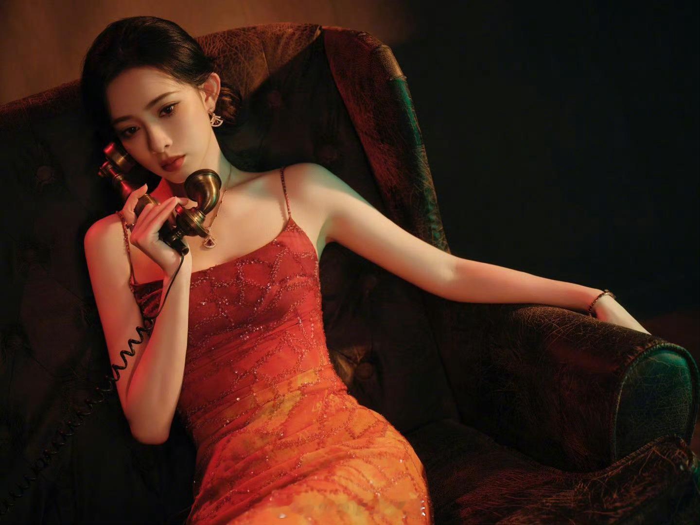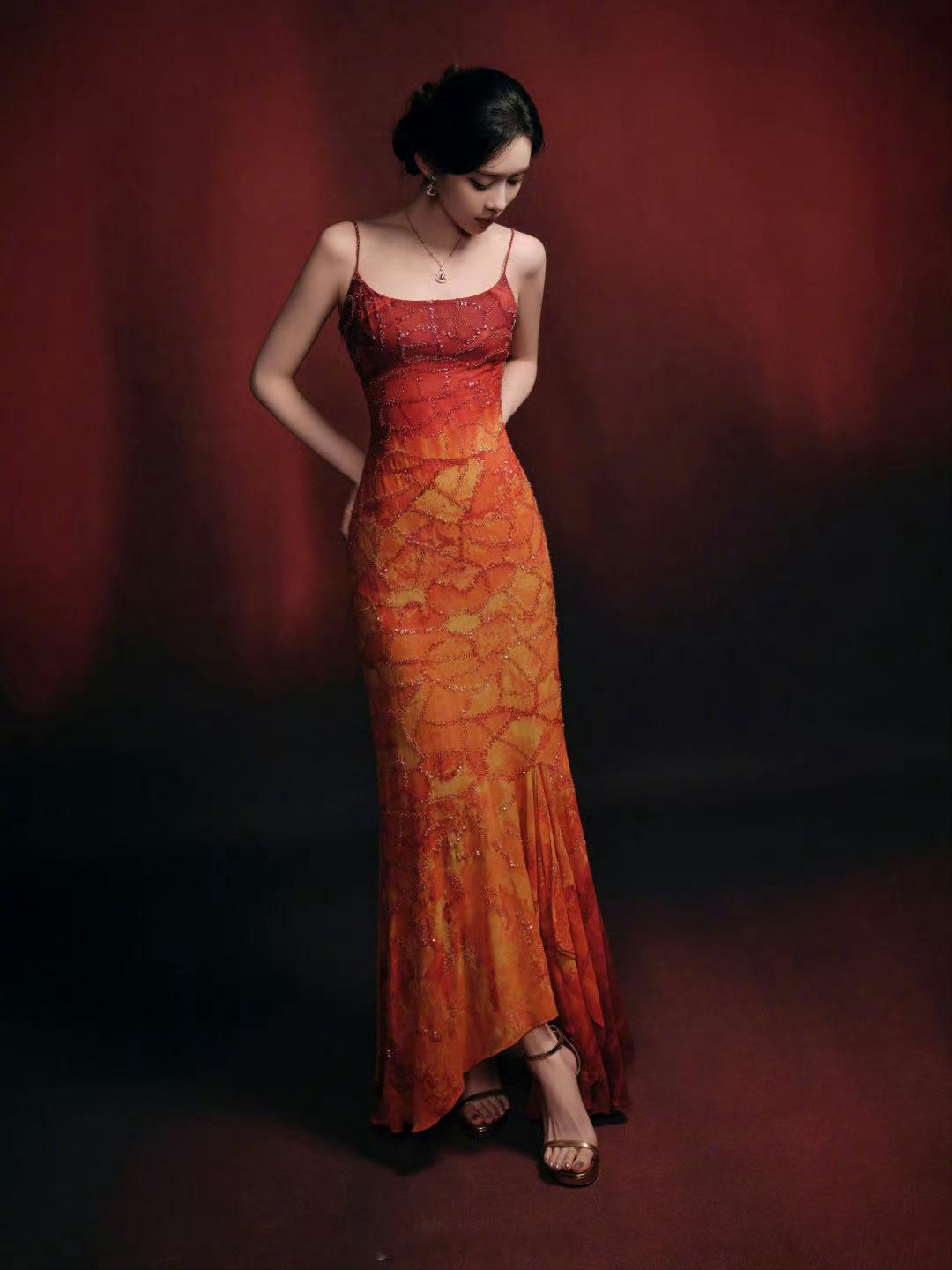 孟子义渐变吊带裙孟子义星光大赏第二套出图孟子义系列渐变吊带裙,红玫瑰🈶