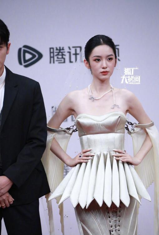 但凡张天爱身上有一点赘肉都穿不了这个衣服