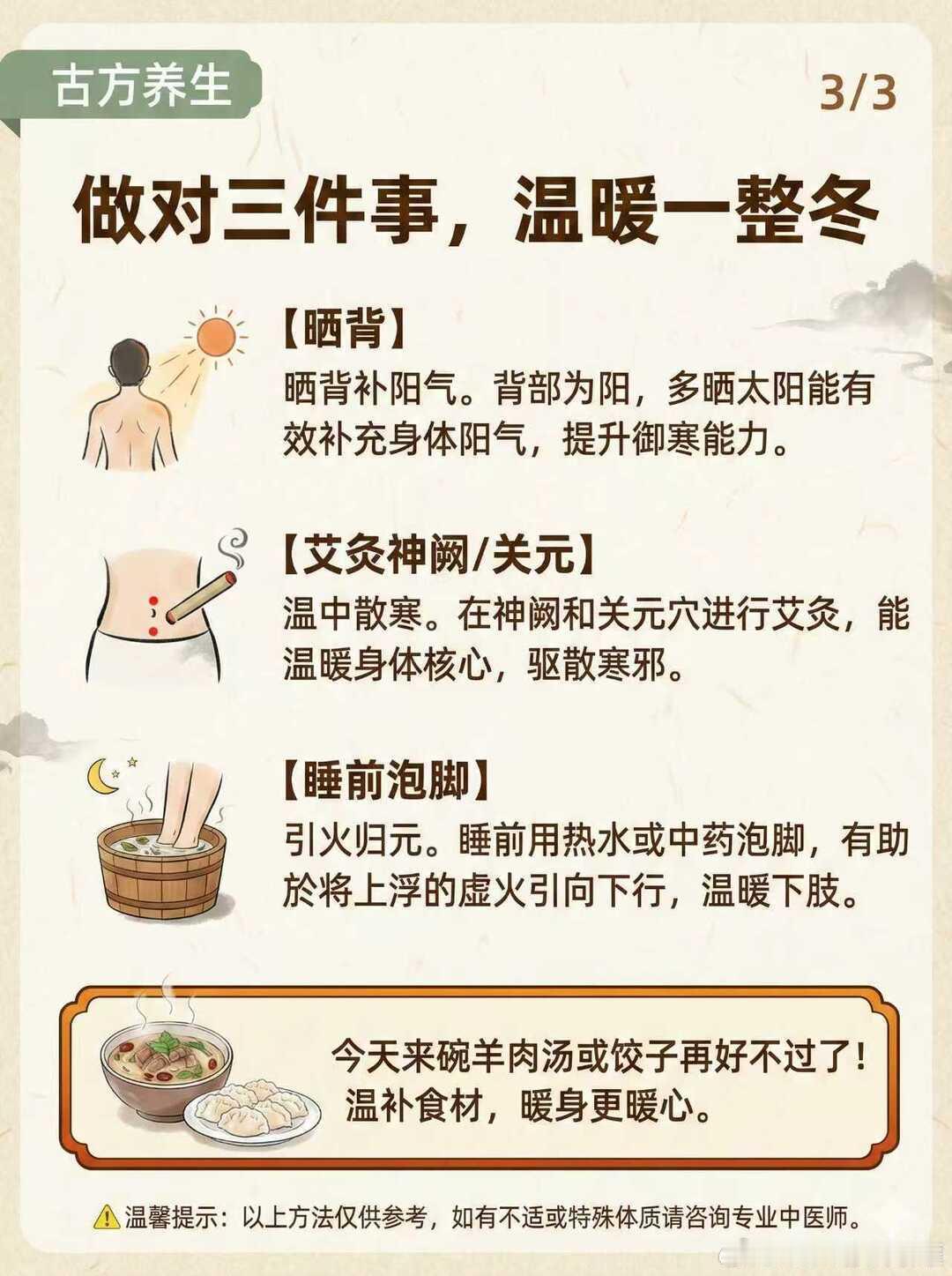 冬至时节如何养生冬至时节作为一年中阴阳转换的关键节点,护阳气防寒邪成了全民热议的养生焦点,尤其今年流感高发期,科学调养更显重要。如果出现咳嗽或外感症状,需得调理再进补,避免闭门留寇。