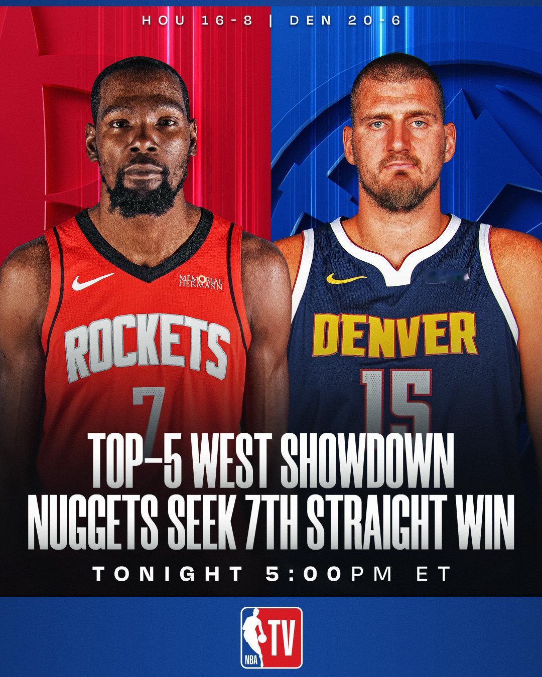 杜兰特谈约基奇:"他是我见过的篮球运动员中最顶尖的10人之一,甚至可以排进前5。"火箭vs掘金 休斯顿火箭