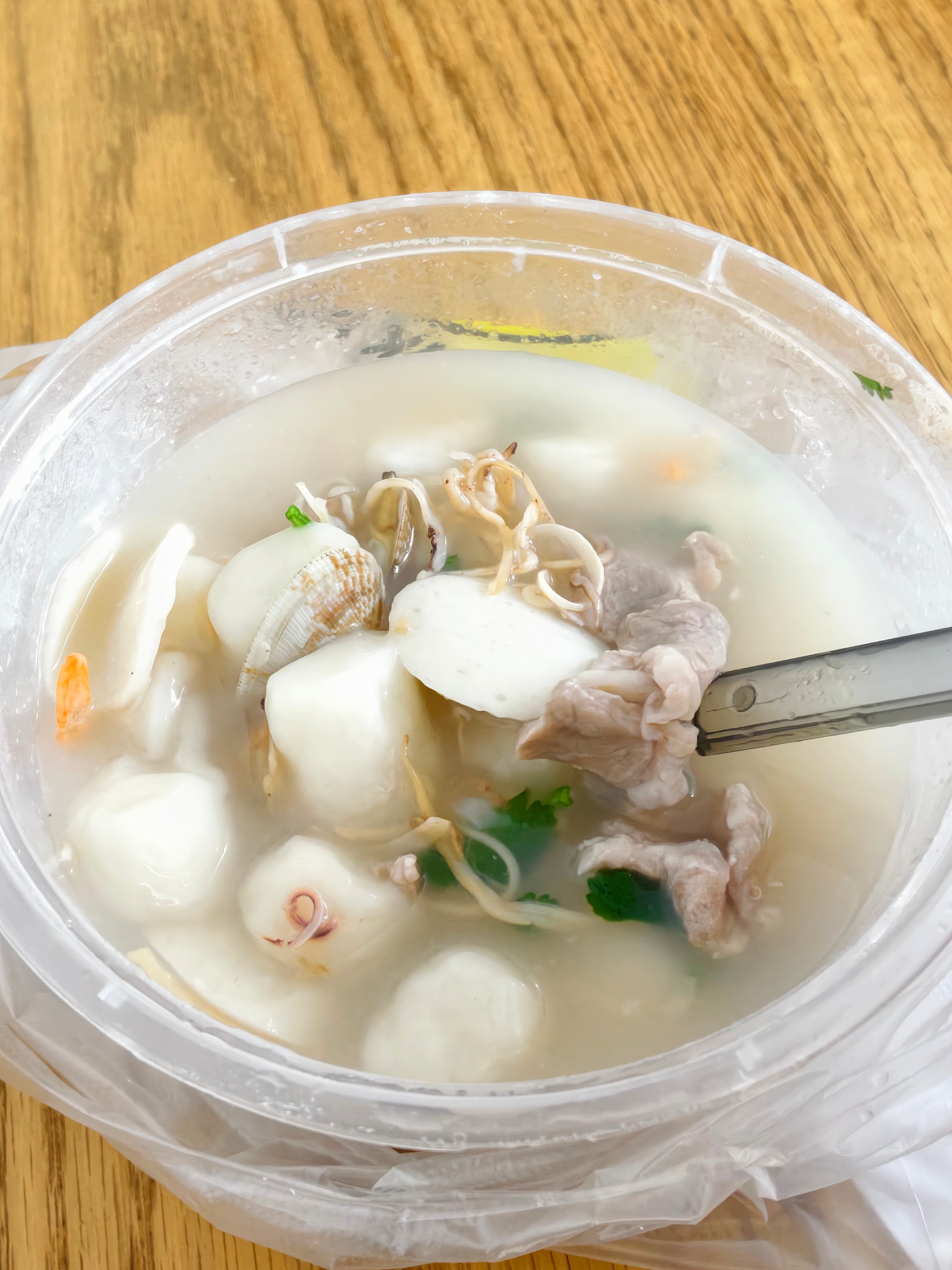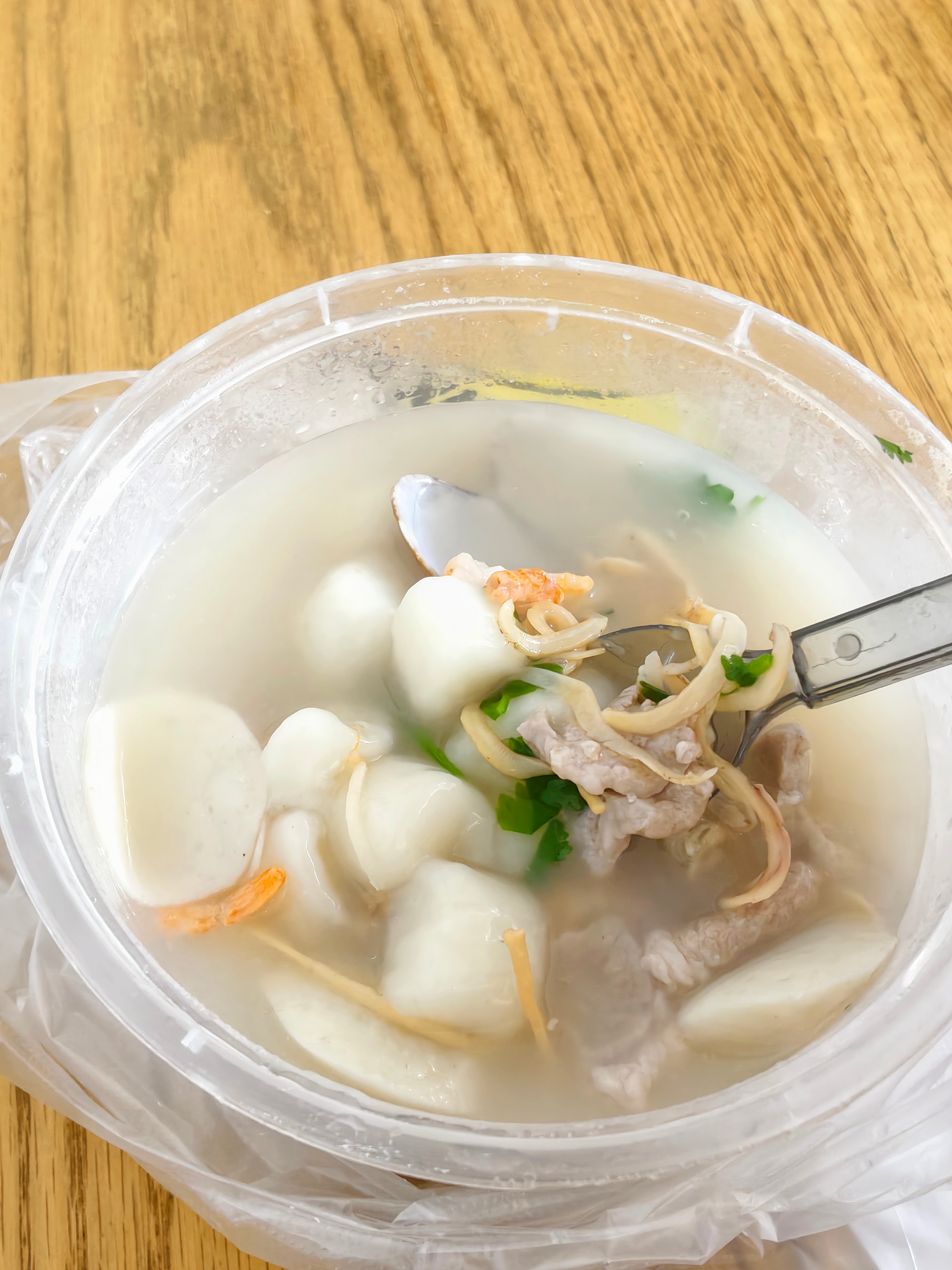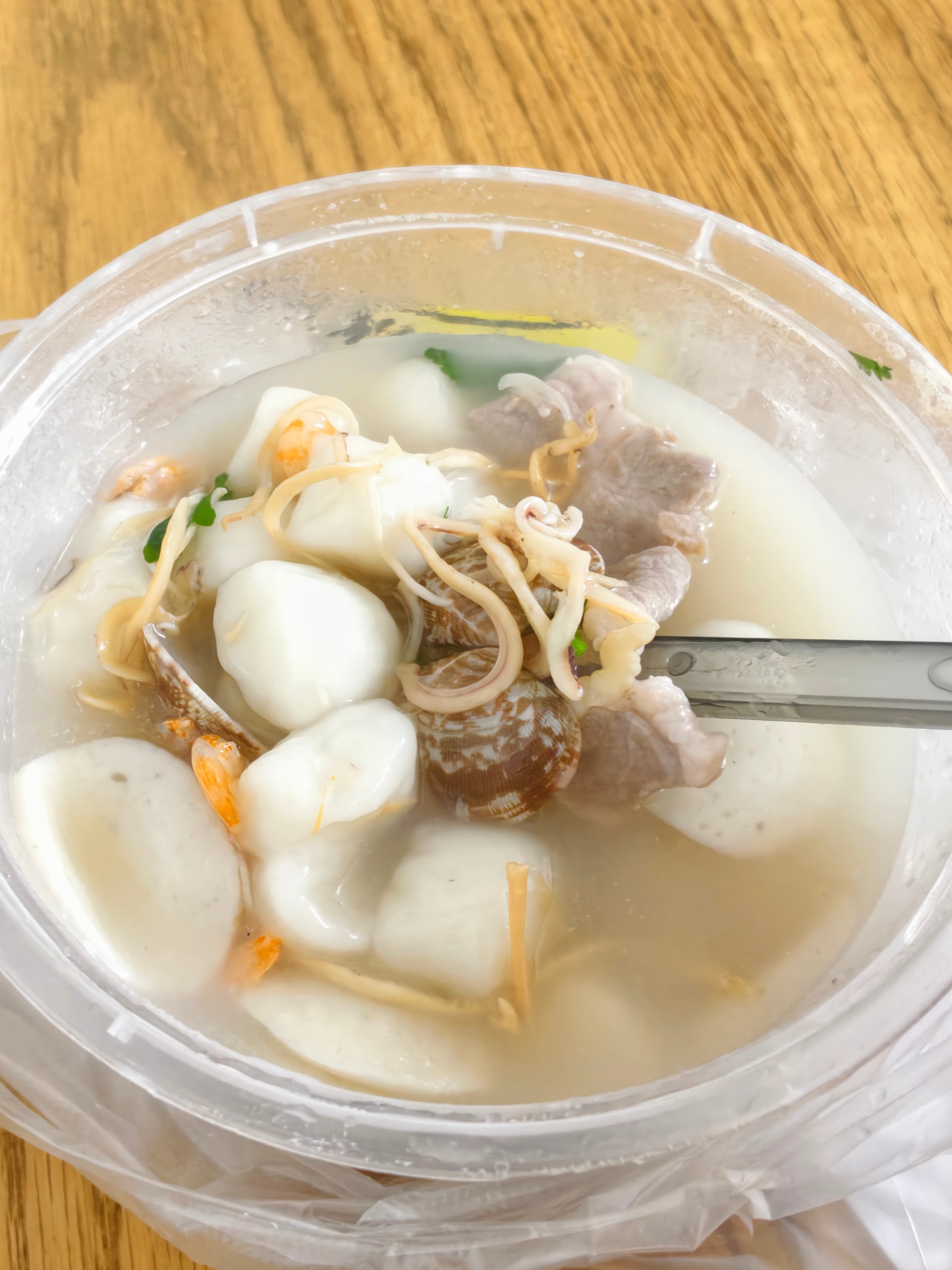 冬至这是我老家的咸汤圆,里面有很多料,虾米,鱿鱼丝,瘦肉,花甲,白萝卜味道很鲜甜