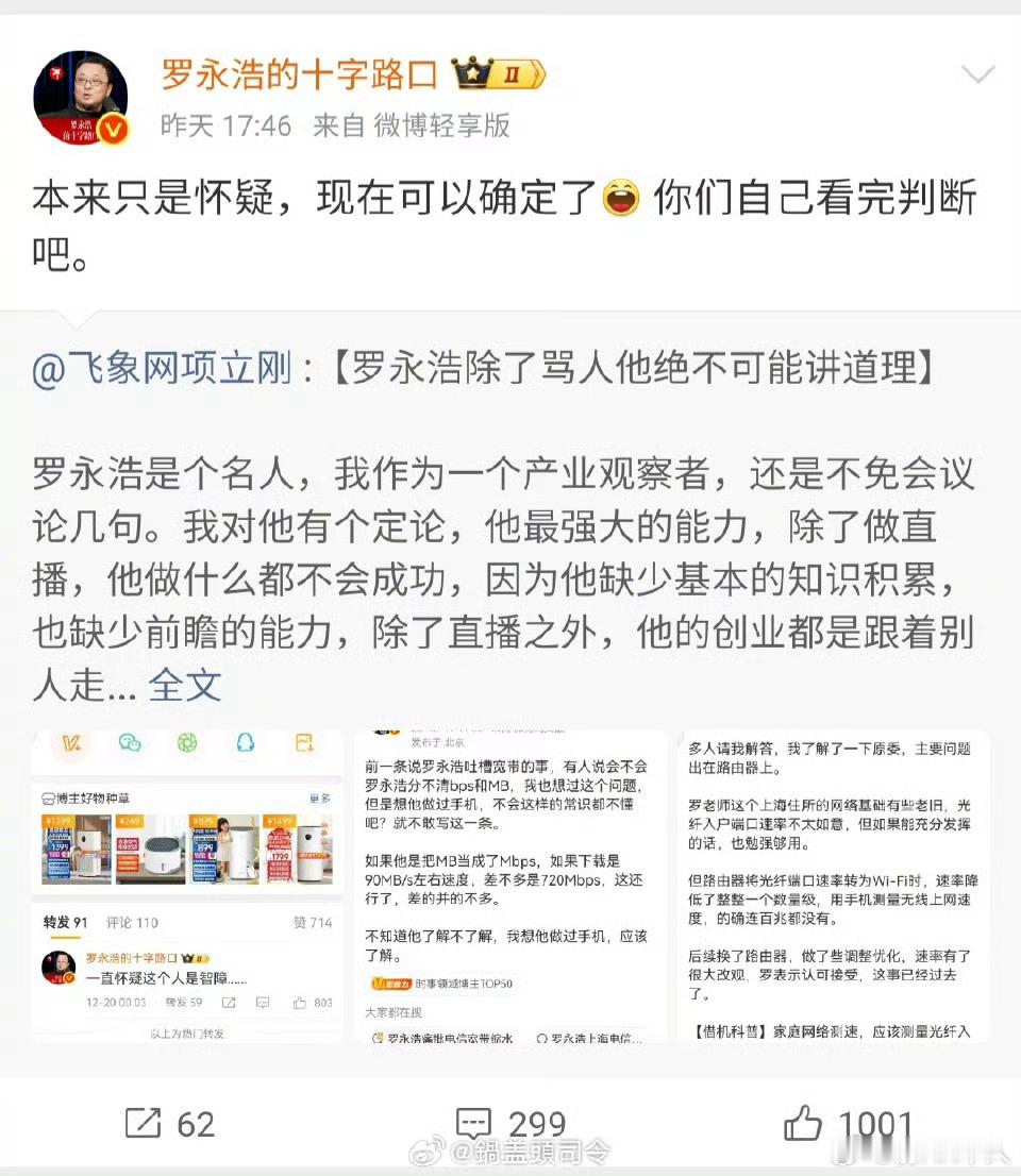 社会需要罗永浩这种人来吐槽提升,当然项立刚老师也说得对,老罗除了营销才能,其他都不行。所以老罗创业去带货才是正道。制造业不是老罗能胜任的领域。