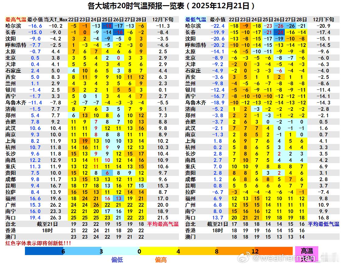 【气温波动继续】今明降温明显的东北和江南一带,明天气温又会回升,后天部分地区继续升温,但又有冷空气开始西北以及内蒙古等地。24日降温又会波及我国大部地区。东北和江南又将是降温核心区。未来省会城市气温波动最大的应该是哈尔滨。从今天算起,最高气温先升9℃又降17℃再升12℃(零下10℃-零下1℃-零下18℃-零下6℃)。