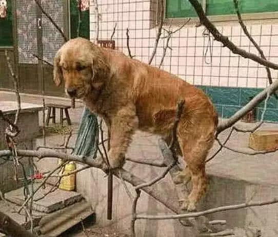 这只金毛老是喜欢站在家门口的枯树上,原来是因为它平常的好伙伴:一只大公鸡经常呆的地方,可这只公鸡最近被家里人杀掉吃了,金毛失去了它的好朋友,只好每天都来到它之前待过的地方思念好友了。