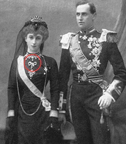 介绍一枚经典设计的蝴蝶结胸针,它属于挪威二公主阿斯特里(国王二姐) 最开始是她奶奶莫德结婚时英国贵族Lord and Lady Rothschild(即罗斯柴尔德家族的人)送的结婚礼物(我造你们又要吐槽莫德的腰),暂时不明确是莫德直接送给阿斯特里还是中途有经媳妇玛莎的手 反正据搜图的结果看阿斯特里戴的次数还挺多的。爆款蝴蝶结胸针在贵圈特别特别多,但这枚带珍珠吊坠,因此看着还挺秀气,适合阿斯特里以后留给小辈