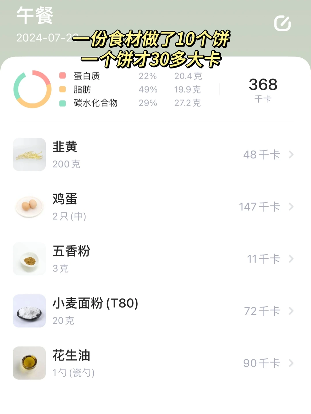 有幸在亲戚家吃过一回,被惊艳到了![哭惹R]低卡香酥的早餐韭黄鸡蛋饼一出锅就惊艳到我了,酥软咸香,香酥美味,一口咬下去真的嘎嘎香,好吃到停不下来了,我一下子炫了4个,好吃又掉秤,饱腹感还强,重要一个饼才30大卡,真的巨香巨好吃,口感柔软又有点劲道,味道真的绝了,一盘都不够吃,家人吃了,都赞不绝口的,一次性做少了,减脂期的姐妹们可以放心吃,简单快手,赶紧试试啦~ 🥗食材:鸡蛋、韭黄、面粉 🥘做法:详细步骤看上图7️⃣哟~ 喜欢吃韭黄鸡蛋饼的姐妹们快来试试!减脂期也可以吃的哟