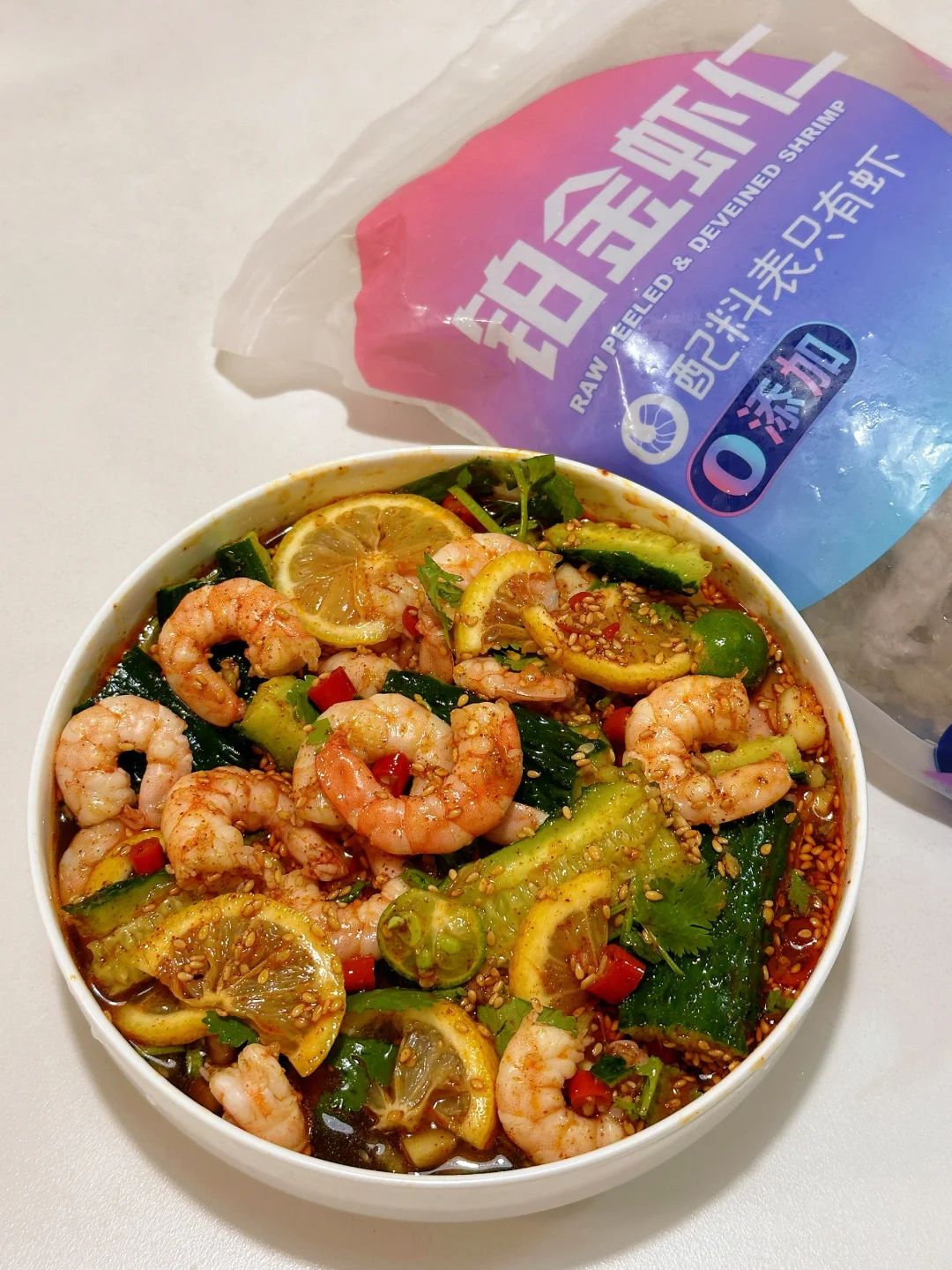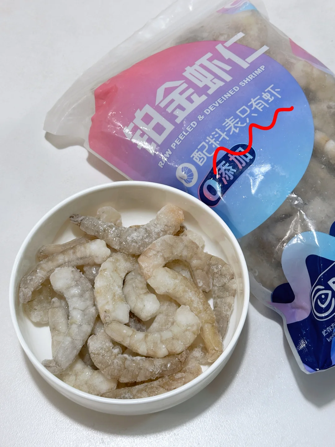 ✅ 虾仁选择心机:一定要选配料表干净的!我用的铂金虾仁配料表巨干净!纯虾无添加保水剂,煮完鲜甜的虾味浓郁飘满~口感紧实和现剥虾几乎没差,而且超薄冰衣,取拿不要太方便!