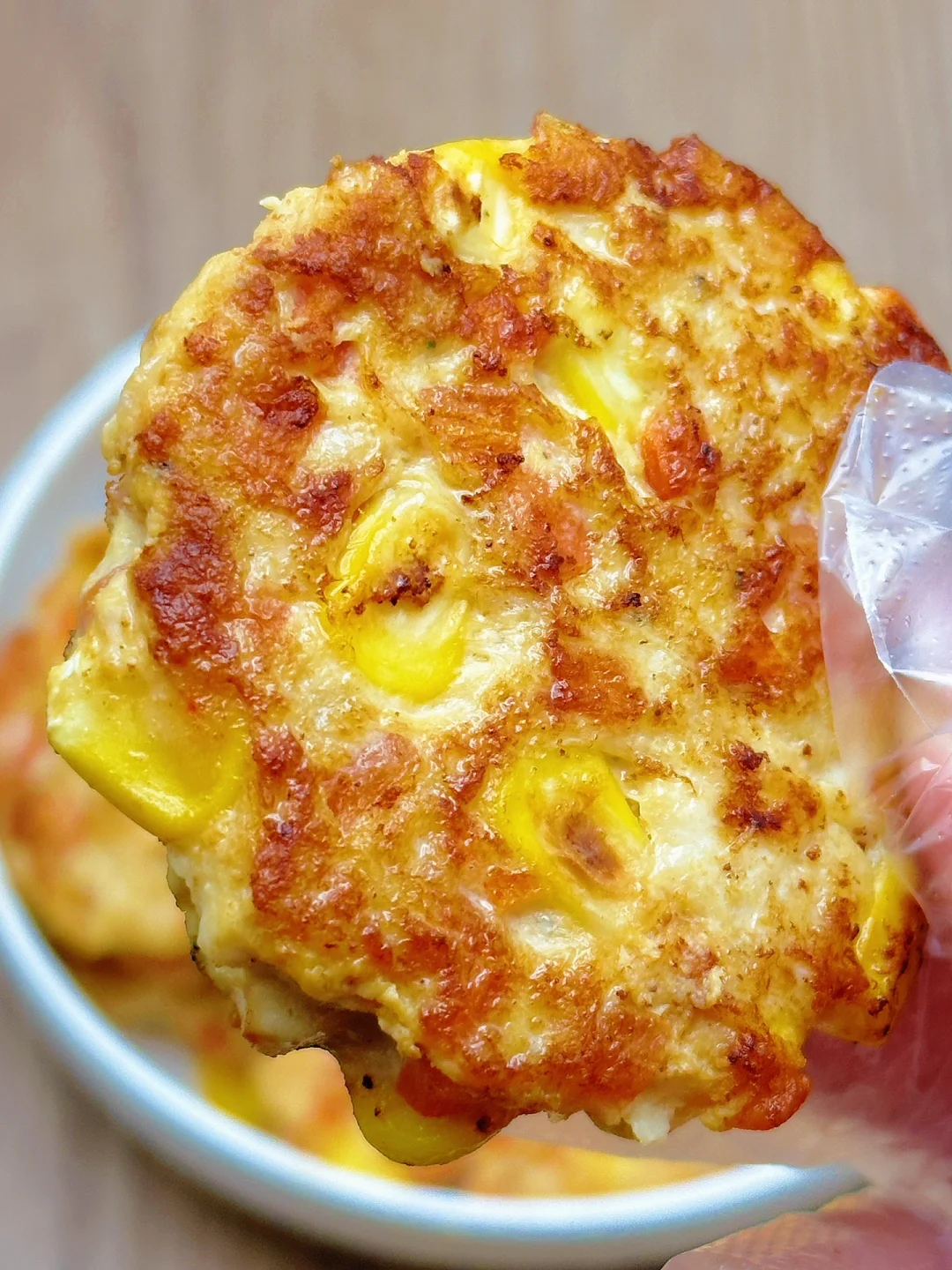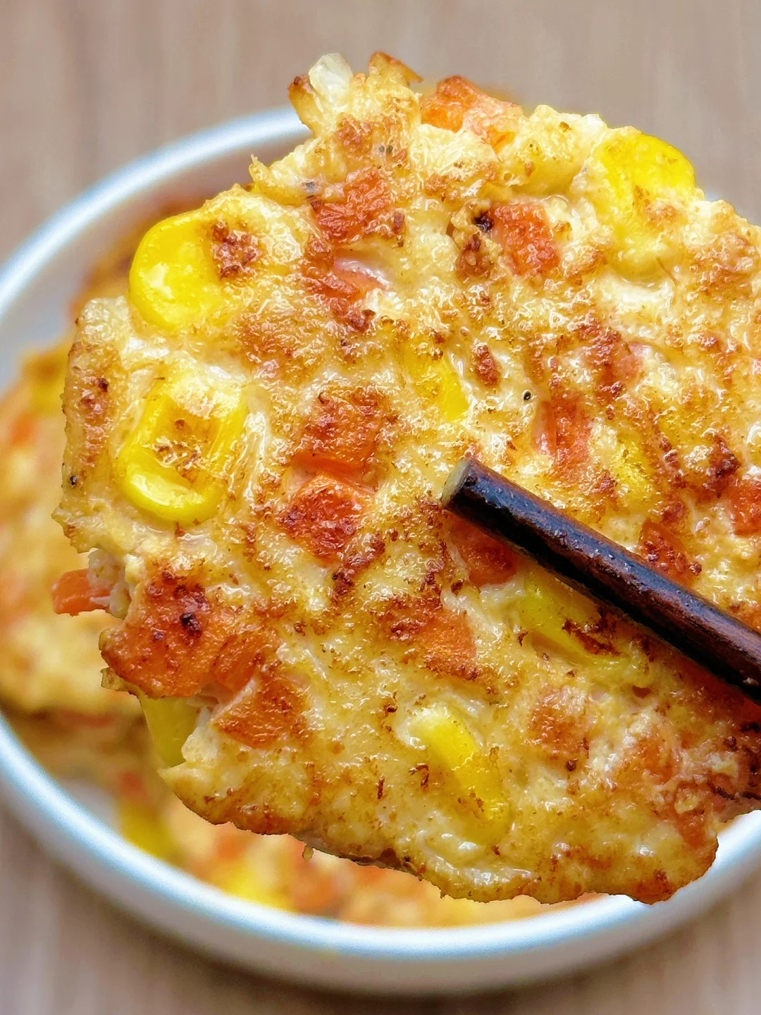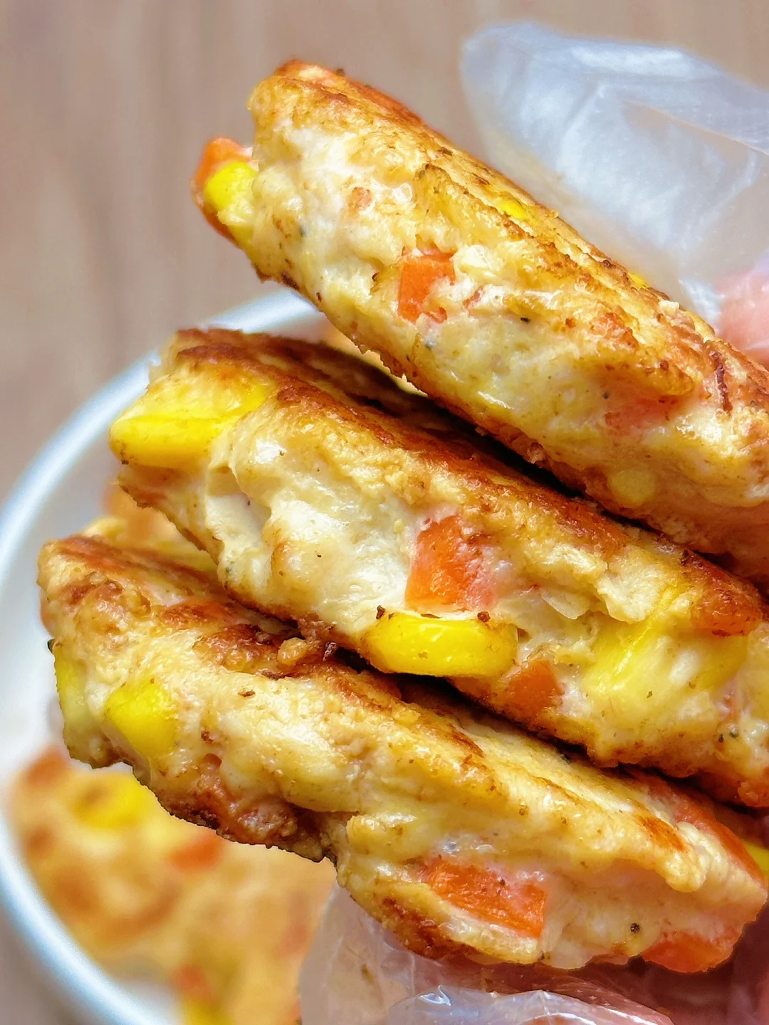 🥗食材:鸡胸肉、胡萝卜、虾皮、玉米粒(做了12个饼)