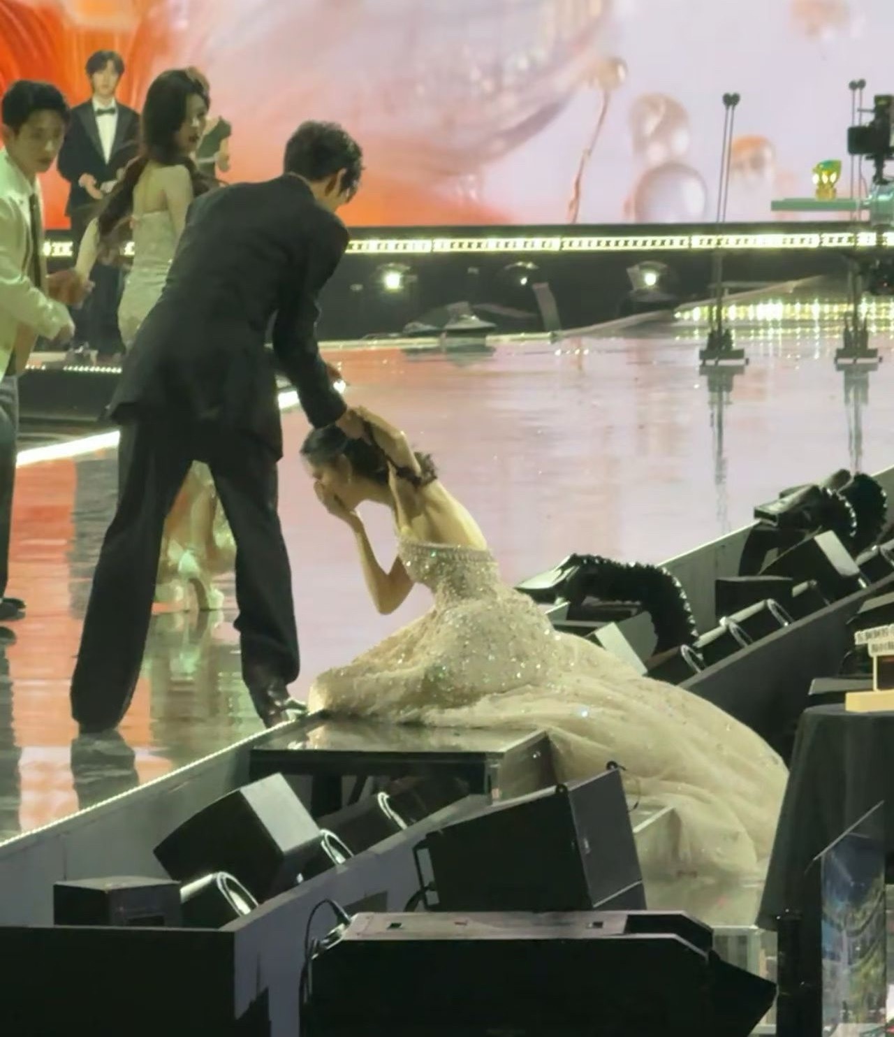 孟子义摔了星光大赏内场没事就好!幸好有李昀锐在!这图有世界名画的感觉! 孟子义摔倒李昀锐的反应