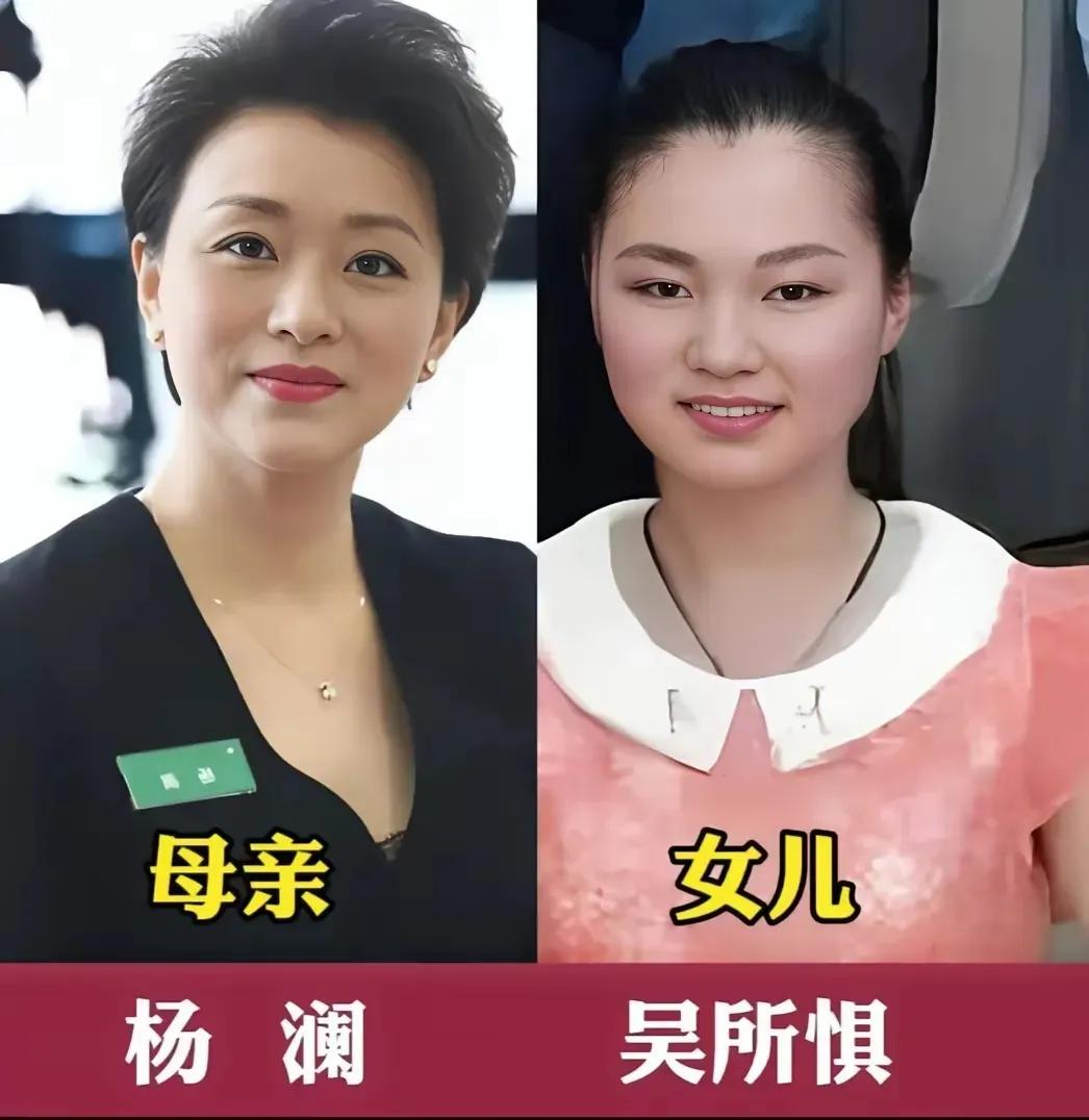 杨澜母女合照首曝光!却让人惊掉了下巴,这女儿真是浪费了老妈的颜值基因,五官身材都太像富豪老爸了,黑色深V短裙配波浪卷,打扮过于成熟,真不像25岁的人,不过,幸好儿子没有错过妈妈的美貌基因,俊朗长相与杨澜如复制粘贴一般,看来基因这东西果真是门玄学~ 前央视知名主持人杨澜罕见秀幸福!晒出母女同框照,25岁的女儿吴所惧暴风式长大,只可惜身上却没一点杨澜的影子,一袭黑色修身长外套内搭同色超短裙,身材丰满圆润,不仅少年老成比妈更显成熟,气场更是比老妈还要强,不愧是富豪千金啊! 杨澜身穿一袭浅灰色印花开衫配小黑裙,尽显曼妙身姿,还是一如既往的精致温婉不失端庄大气!对镜微笑,五官精致,短发微卷尽显知性美!这哪像是年过半百的人?