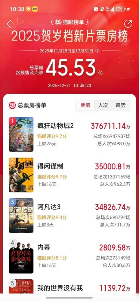 十二月寒冬,今日冬至,得闲谨制票房今天过3.5亿了! 谁能想到在这个被说是“最