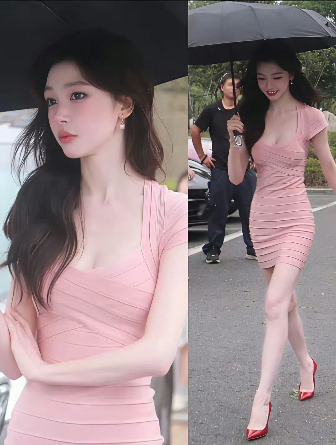 但凡张天爱身上有一点赘肉都穿不了这个衣服