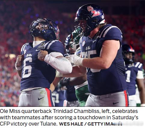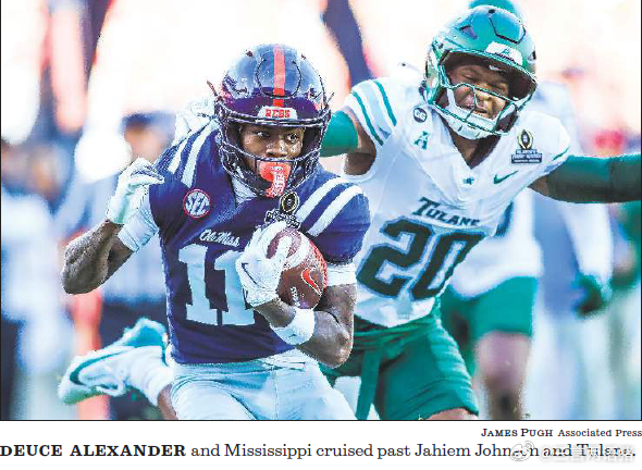首轮排名第6的密西西比大学主场41:10淘汰排名第11的杜兰大学