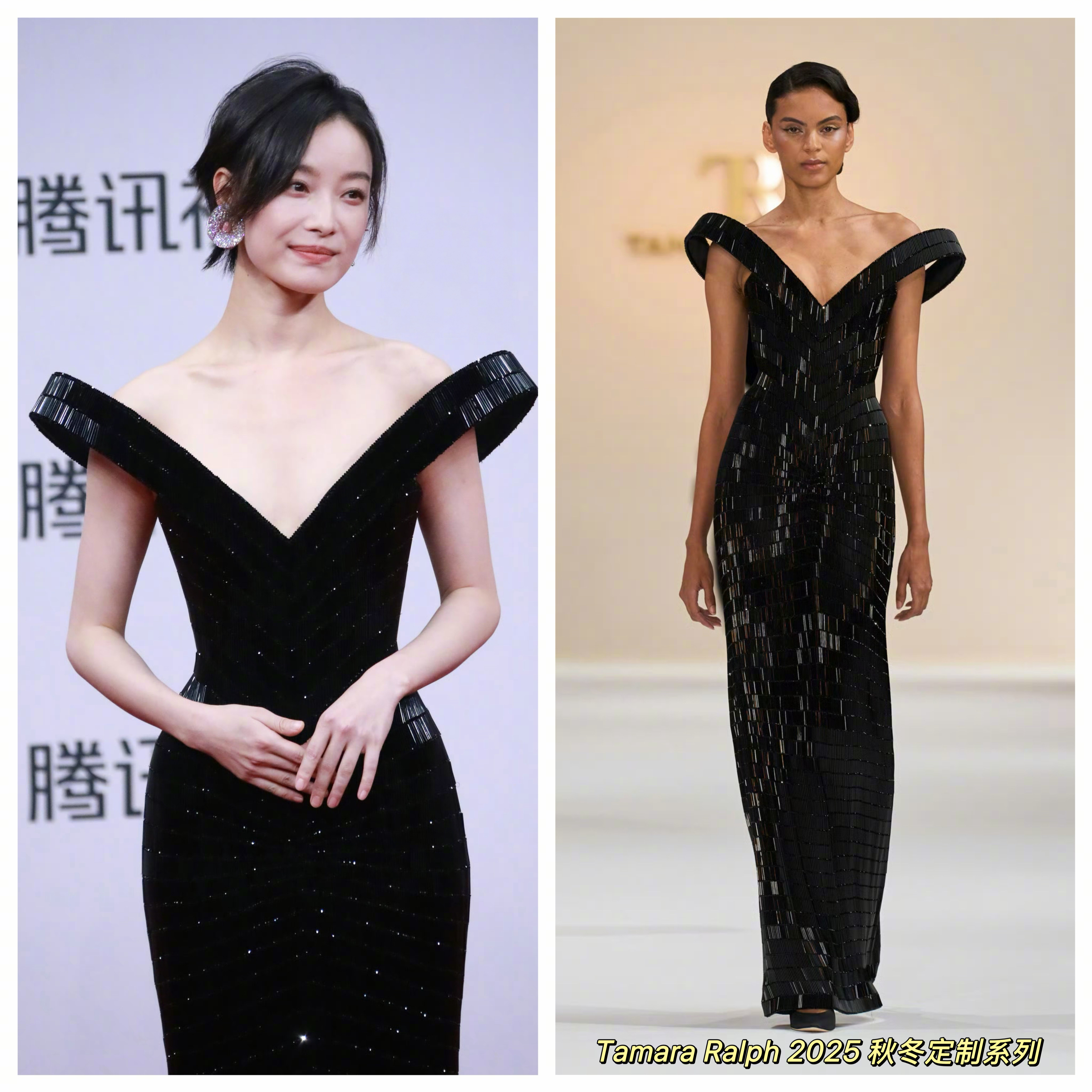 倪妮 今日星光大赏红毯,身穿Tamara Ralph 25秋冬定制系列礼服,佩戴CINDY CHAO艺术珠宝,黑色珠串礼裙搭配短发造型,由内而外的散发着自信魅力。🖤✨