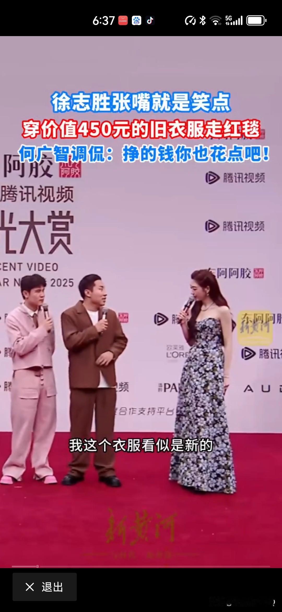 徐志胜穿450元旧衣走红毯!徐志胜穿450元地摊货走红毯太对不起主办方了吗?至少有点不尊重,但因为为受困儿童过冬温暖基金会努力,这是他家最贵重的一款衣服,知道真相的我默默地接受了他的形象,不能以貌取人,要看他为社会做了什么,娱乐圈里面也有一股清流,所以徐志胜混成了脱口秀的大伽,过几年希望徐志胜是至尊宝!