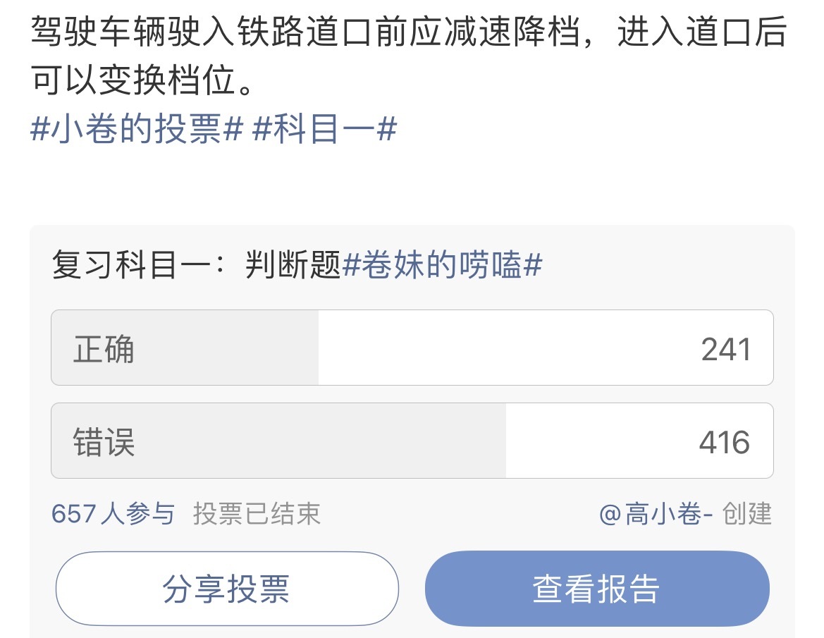 车辆驶入铁路道口前需减速降档,但进入道口后严禁变换档位原因:道口铁轨易导致车辆颠簸,换档时离合器分离可能造成发动机熄火,车辆滞留轨道区极危险。你答对了吗?卷妹的唠嗑科目一