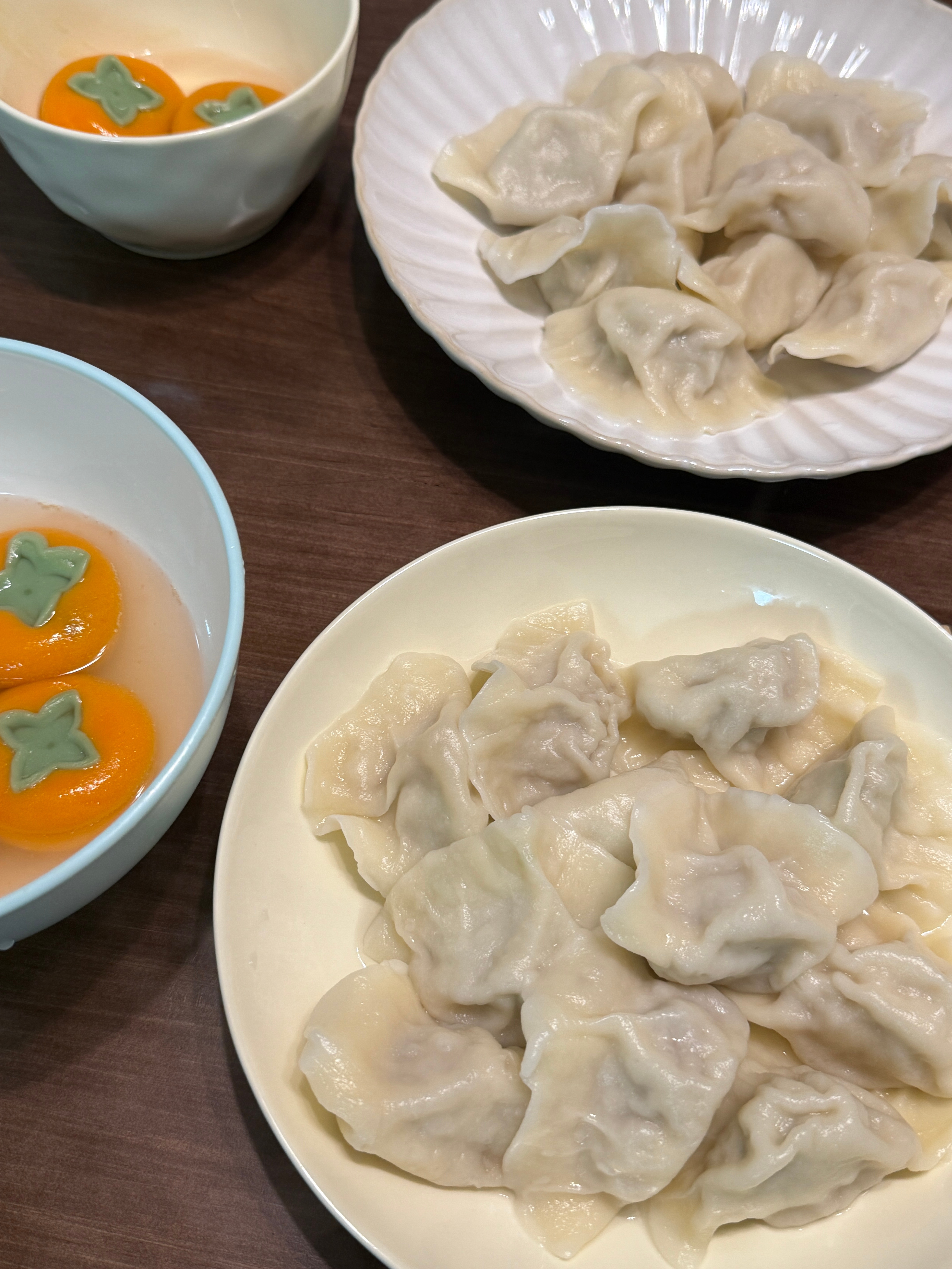 大家冬至吃饺子了嘛?🥟🥢我妈包了三种馅儿的!酸菜肉、芹菜肉、香菇肉!都好好吃~还煮了四个汤圆,柿柿如意我这个冬至可以说过的很南北融合了!冬至冬至三件套 今天小卷长胖了吗 卷妹的唠嗑
