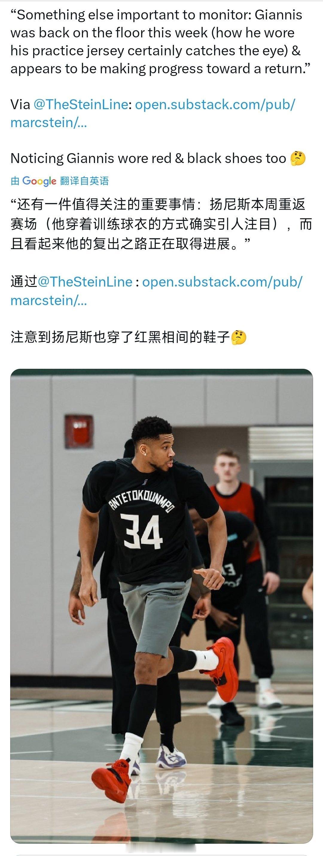 字母哥昨天参加训练,值得注意的是,这次字母哥穿了印有自己名字的球衣,而不是印雄鹿的,做自己还穿了双红黑球鞋