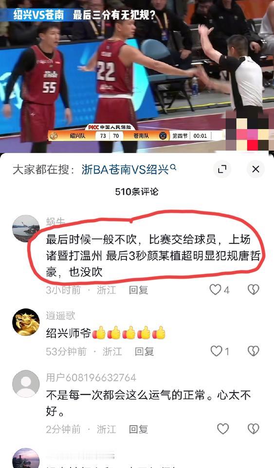 浙ba赛场昨晚再现争议性判罚,柳杨杰最后三秒出手的那个球到底有没有犯规?裁判最后时刻对他出示的技术犯规有没有错? 就事论事,我们不管前面几十分钟的判罚是否公允,我们就看这最后一个回合裁判的判罚到底有没有错?个人觉得这最后一球的判罚没问题,评论区网友也说了“最后时候一般不吹,都会让比赛交给球员”,而柳杨杰冲上去跟裁判理论,显然是太冲动了,被吹技术犯规没毛病。我们始终要记得一点:场上裁判最大! 大家觉得呢?