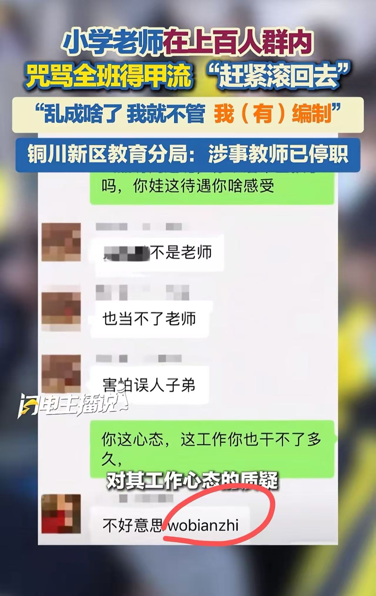 “有编制就是牛啊!”小学老师在上百人的群内咒骂全班得甲流,赶紧滚回家去,引起群内不满,有人质问:“你不怕丢掉工作吗?”万万没想到,该老师回复:“不好意思,我有编制,你能拿我怎么样?