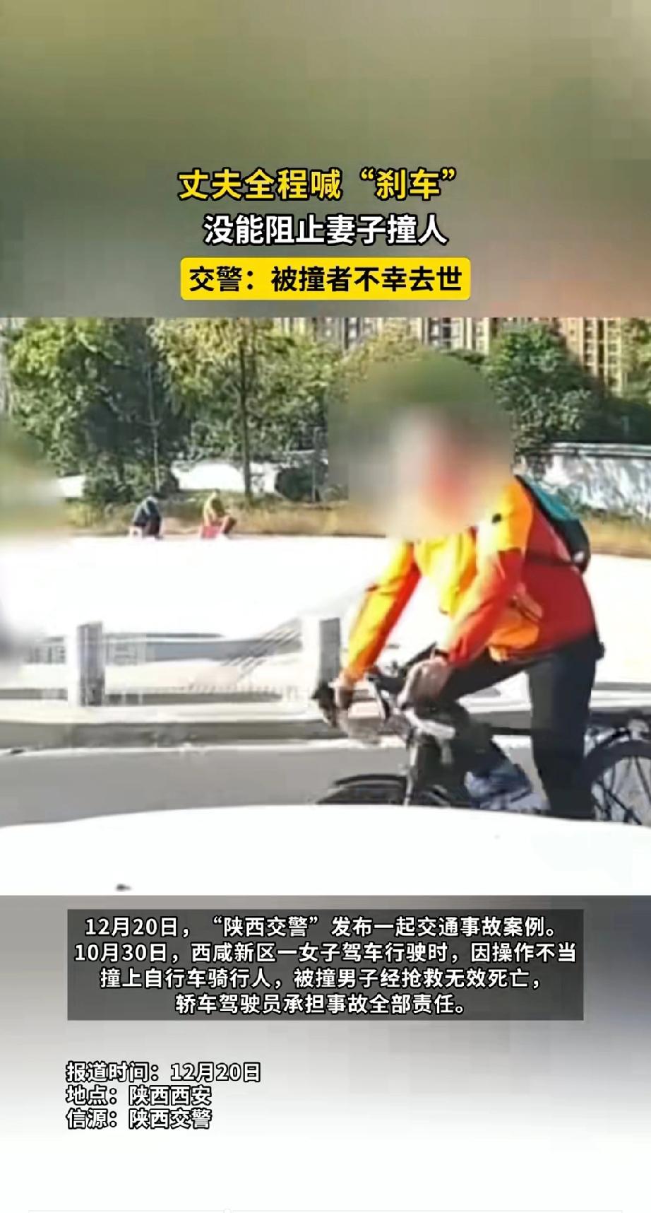 这两天全网最无奈的丈夫,应该就是这起事故的副驾驶了。 喊了N遍点刹车,老婆还是说“没有”,最终把人撞的抢救无效。 其实这起事故在其他方面,也可以避免: 1. 强制规定新上市的私家车型必须配备主动刹停!现在连6.98万的海鸥都有,说明,并不是很贵的配置。 2. 电子手刹必须要有手动手刹一样灵敏,可以紧急情况按停。 3. 在驾考时,给部分大龄女性司机交通突发情况培训考核,考核通过才能发放驾驶证。这里绝非歧视女性,而是一次又一次的事故证明,人命关天,很有必要。