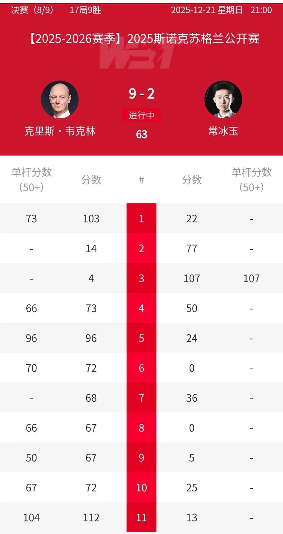 苏格兰赛,常冰玉2:9惨败,痛失首冠的原因找到了,幸福来的太突然,功利思想致崩盘,但不是世界末日。 2025斯诺克苏格兰公开赛决赛,重返职业比赛,仅排名第70的常冰玉,输给排名第17的查尔斯.韦克林。 其实对所有人来说是可以接受的,只是不能接受的是决赛的关键时刻突然不会打球了,比赛只有输和赢两种结果,不能接受比赛的内容。 可能是之前连胜冏哥和塞大师,半决赛又6:1轻取马克.艾伦,让他内心起了波澜,产生了轻敌思想。 再说常冰玉,之前8强都没有进过,突然进了决赛,从心状上也没有做好充足的规划。在2:1领先后,第4局就是转拆点。想赢怕输,犹犹豫豫,可能想多了,脑子在想获奖感言,在想赛后如何庆祝………这就是主播们说的脑子里有画面了。 输了就输了,也不是世界末日,看看下面这些名将输球的例子: 杰克.利索夫斯基,前5次进决赛,一冠难求。 周跃龙4进决赛,3次惨败,一冠难求。 巫师还有5连亚呢,但希金斯没有输在心理上,也打出了水平,只是最后电量耗尽了。 再说韦克林(除单局限时赛)3次决赛,也是一冠难求。 再想一想,世界冠军宾汉姆去年香港大师赛还0:10输尼尔.罗伯逊,周跃龙0:9输罗卜。 看了几场常冰玉的比赛,有实力,就是防守不到位,解球不精细,做些改善,多经历大场面,心态调整好,夺冠是迟早的事。