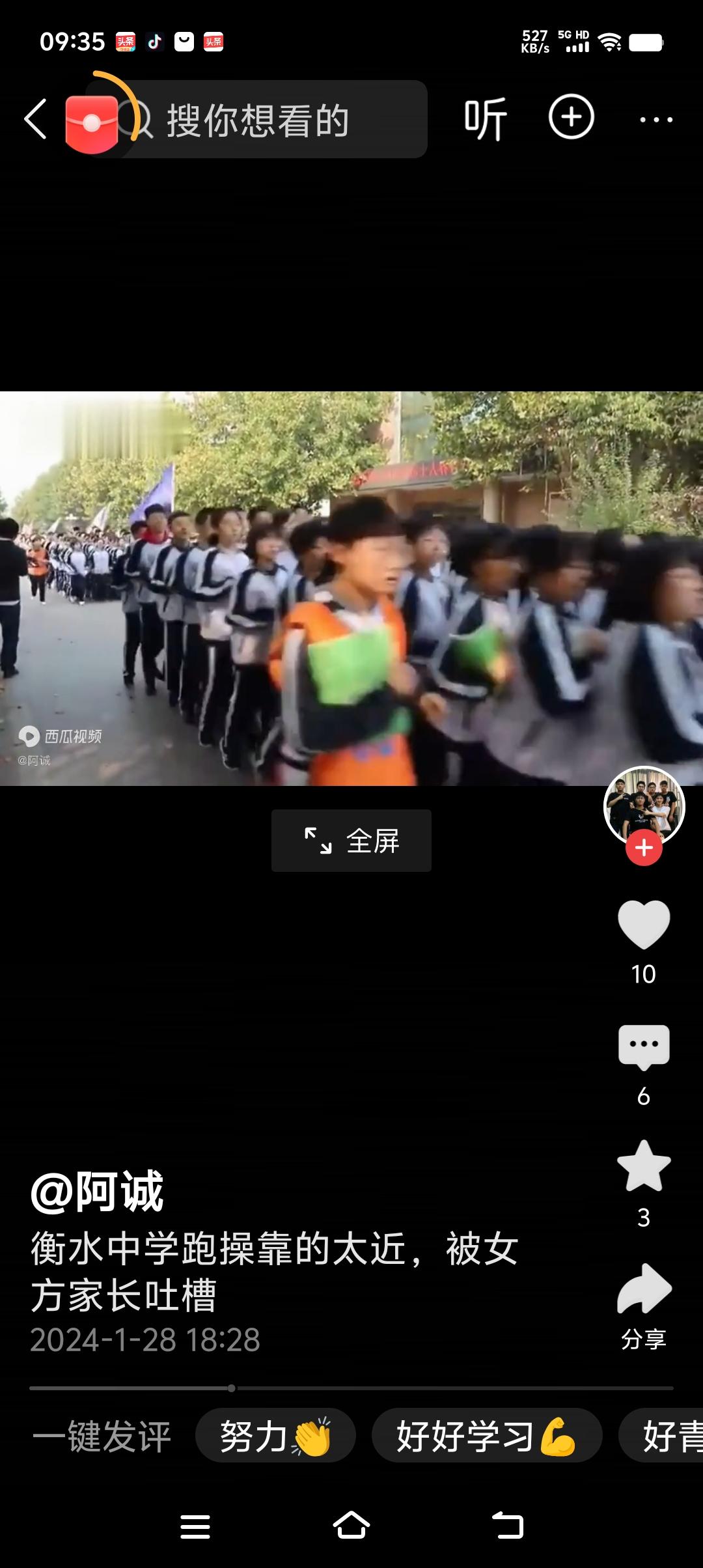 衡水式跑操到底该不该效仿? 某个学校的跑操已经闻名全国,所有的学校没有不知晓的,这个学校跑操模式的确实新奇! 举着书跑操,一边跑操一边读书,声势浩大,浩浩荡荡,成为校园的一道风景, 真可谓是锻炼身体,步调一致,整齐划一,不耽误学习! 分秒必争的锻炼身体,分秒必争学习演绎的得淋漓尽致! 按说这样的跑操确实值得学习效仿, 可是人家跑操没事,模仿他们跑操的学校却出了事儿! 前段时间石家庄某学校,因为模仿花式跑操,跑操刚一结束,一个女生坐在地上晕了过去,就再也没有起来。 原因是这名女生身体不适,前一天家长已经请假,可是第二天跑操的时候,老师仍然要这名女生照常跑操,结果跑操结束,女生就出事了! 不容否认锻炼身体的跑操没有错, 效仿学习名校花式跑操也没错, 关键就是有些同学身体不适已经请假,为什么老师不准假? 也许有的老师会说一个请假,其他的都会接二连三的请假,但是老师要有火眼金睛能够明辨出到底谁是真的身体不适?谁是混水摸鱼?这个还真的不好辩识! 也有人说学生为啥身体不是适,老师让跑你就跑?为什么不坚持不跑操,但是有些学生讲,如果自己请假了,老师阴阳怪气的语气自己真的受不了,老师会说,如果全班同学都像你这样,那谁还能跑?有点不舒服就请假,没完没了的! 学生觉得老师的这些话,听了很难受,所以宁可身体不舒服,也要坚持跑! 这事真的不好说,你说老师阴阳怪气吧,确实有些同学混水摸鱼,乘虚而入,有人请假,他就随帮唱影,会也请假! 说到这,不免想起有一个学校学生跑操太多人请假,而且理由很充分女生生理期不舒服,后来学校采取极端办法, 就是让女老师看看学生到底是不是真的生理期这样的一个检查,真的让人提起来都觉得不可思议!当时引起不小的争议! 就跑操这件事,有的学生说身体不适,到底身体不适到什么程度,怎么能够分清呢?如果一个请假,那么也许全班几十号人就会有一半的同学请假,弄不好,老师控制不住局面! 老师又不能让学生出什么诊断来确认是不是身体出了问题?不是身体不适不是医生就能够给你出诊断的! 个人认为如果要是家长打电话,跟老师请假的,那么一般学生身体不适会是属实的,所以最好的解决办法,如果学生真的身体不适,要家长打电话给老师。 再有对于学生跑操请假这个事,还是要老师多做工作,正面引导让学生明确去跑操是一项集体活动,不仅锻炼身体,这更是一项集体活动,如果没有特别的理由,还是要集体步调一致,不能掉队,要有班级的集体荣誉感!如果身体真的受不了,特别不舒服,跟老师实事求是说明自己的身体状况,老师也会准假! 千人千面,千事千办,老师还把好学生的脉,掌握学生的思想动态,学习状况,和学生交心尽量走到学生心里,这样班级工作会好开展很多!