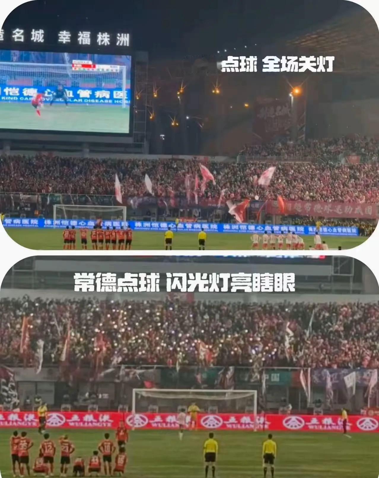 株洲VS常德这场比赛,发生了不该发生的小插曲: 常德队罚点球时,球门后面的株洲球迷全部打开手机闪光灯晃人家眼睛。干扰人家罚点球,这种做法真的有违体育精神和待客之道。 关键是这些小动作,还是株洲球迷会专门组织的,在罚点球的时候,特意从正面看台跑到球门后面的看台干扰对方球员,这就很恶劣了。 主场哨这些就不说了,就场外球迷这些小动作,还是不要有才好。上周株洲和郴州点球大战,球门后的株洲球迷,也是用高音喇叭干扰对方球员。 其实,株洲主场组织方是很给力的,待客之道非常暖心,但是有些球迷确实该提醒一下,不要给株洲主场抹黑。湖南湘超常德队
