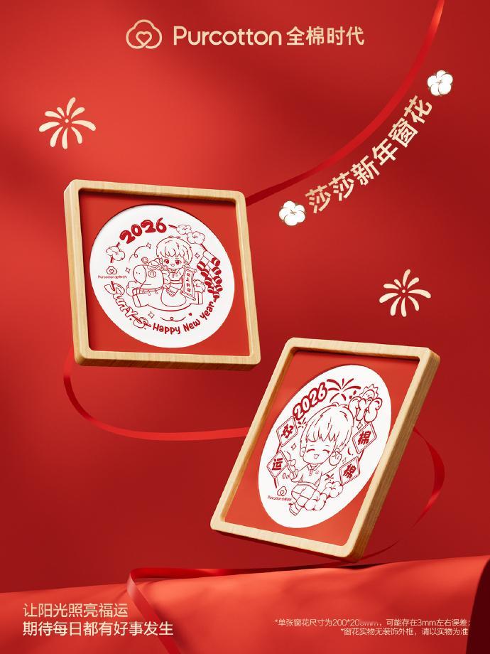 📣 莎莎x全棉时代的好运棉棉大礼包来啦!满满周边,把福气贴满家~🧧 「莎莎新年福卡」 愿好运常伴🧧 「Q版红包+纱窗贴+门挂」 年味一键拉满愿大家:福气围着转,好运来敲门✨而好运的底气,正是 100%全棉 带来的安心守护🌟新的一年,让全棉时代棉柔巾陪你,从每一天的柔软开始,好运棉棉一整年🌾💡 想要这份限量好运?悄悄指路天猫!(22号11:04上线)去天猫购买,买满169.9元就可以带走 限量代言人莎莎【好运棉棉】上上签哦!网页链接手慢无,快接住这份具象化的新年祝福吧!🎁和全棉时代孙颖莎一起好运棉棉 每一代都有全棉时代天猫小黑盒