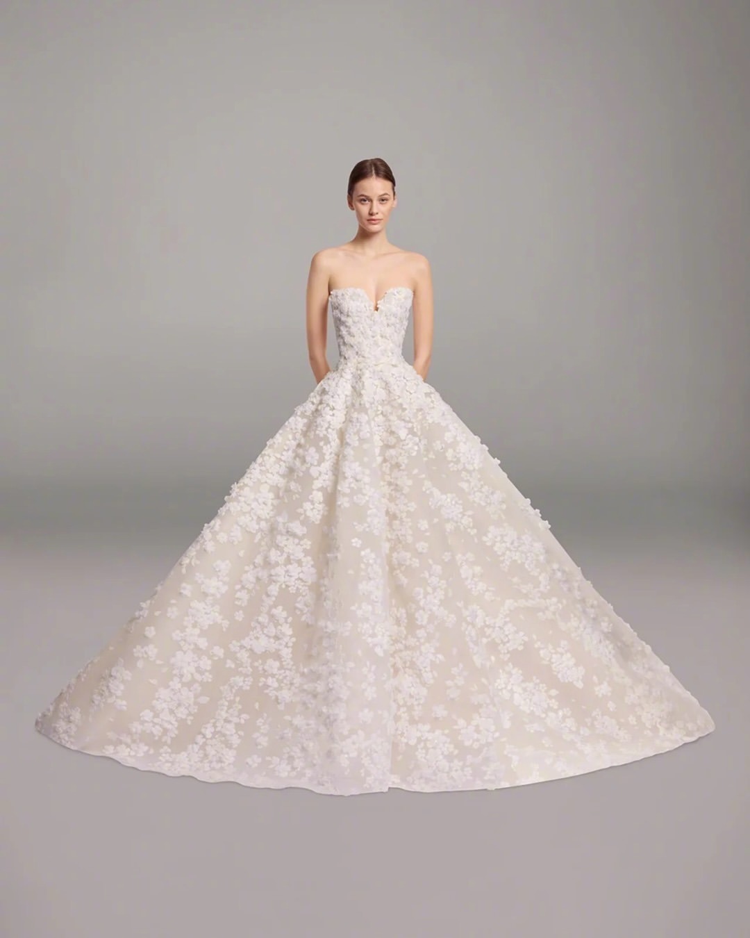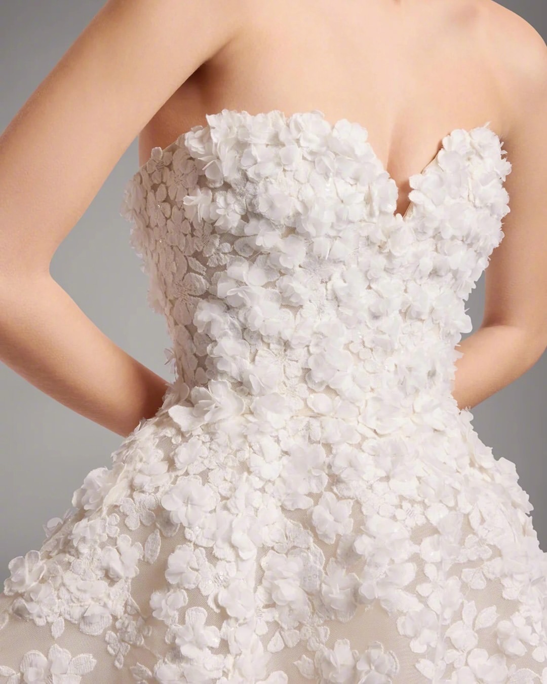 12月20日申敏儿与金宇彬举行婚礼。新娘申敏儿身穿的是Elie Saab 2026年春夏系列婚纱礼服,小v抹胸设计,立体花瓣远看有种厚厚的毛茸茸感,很适合冬季。❄️米拉服饰解析