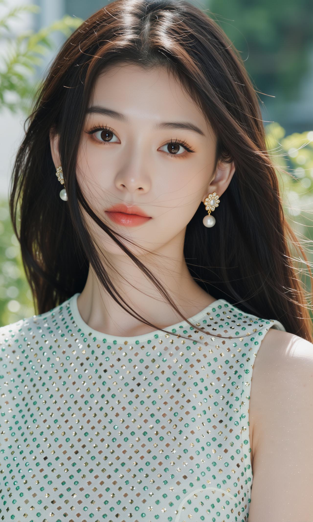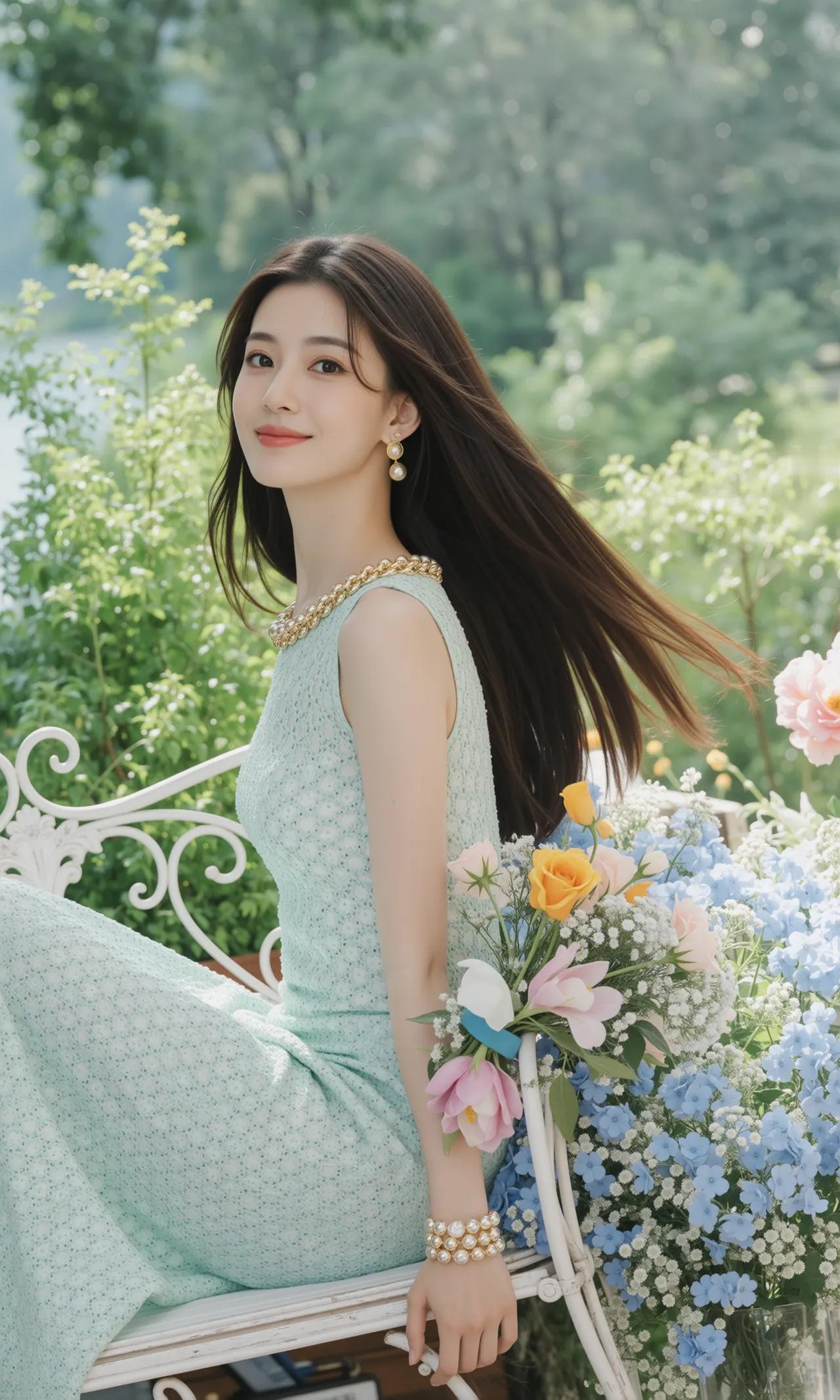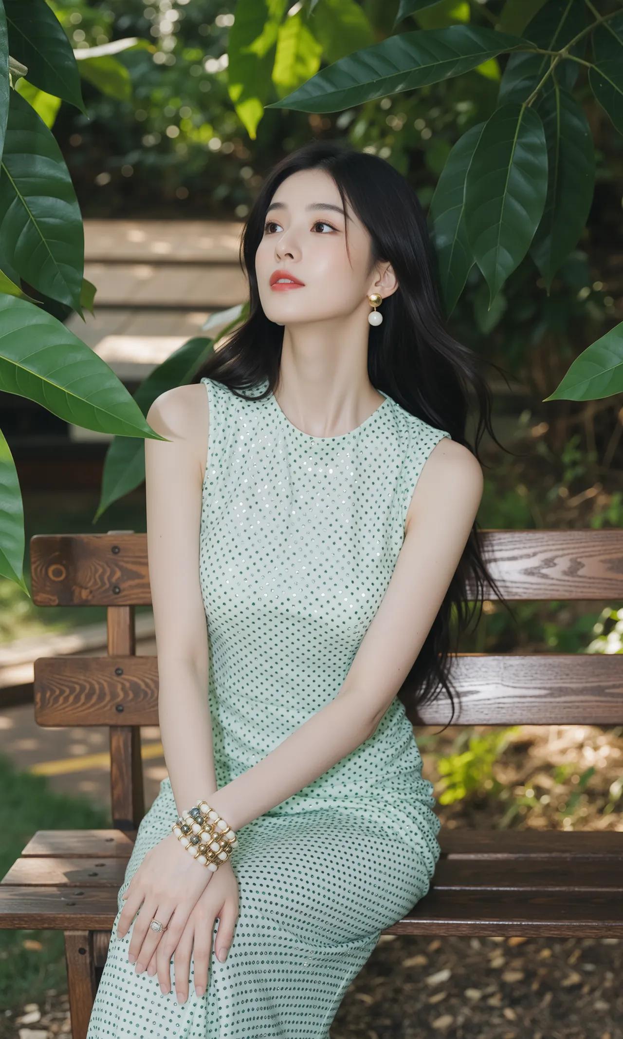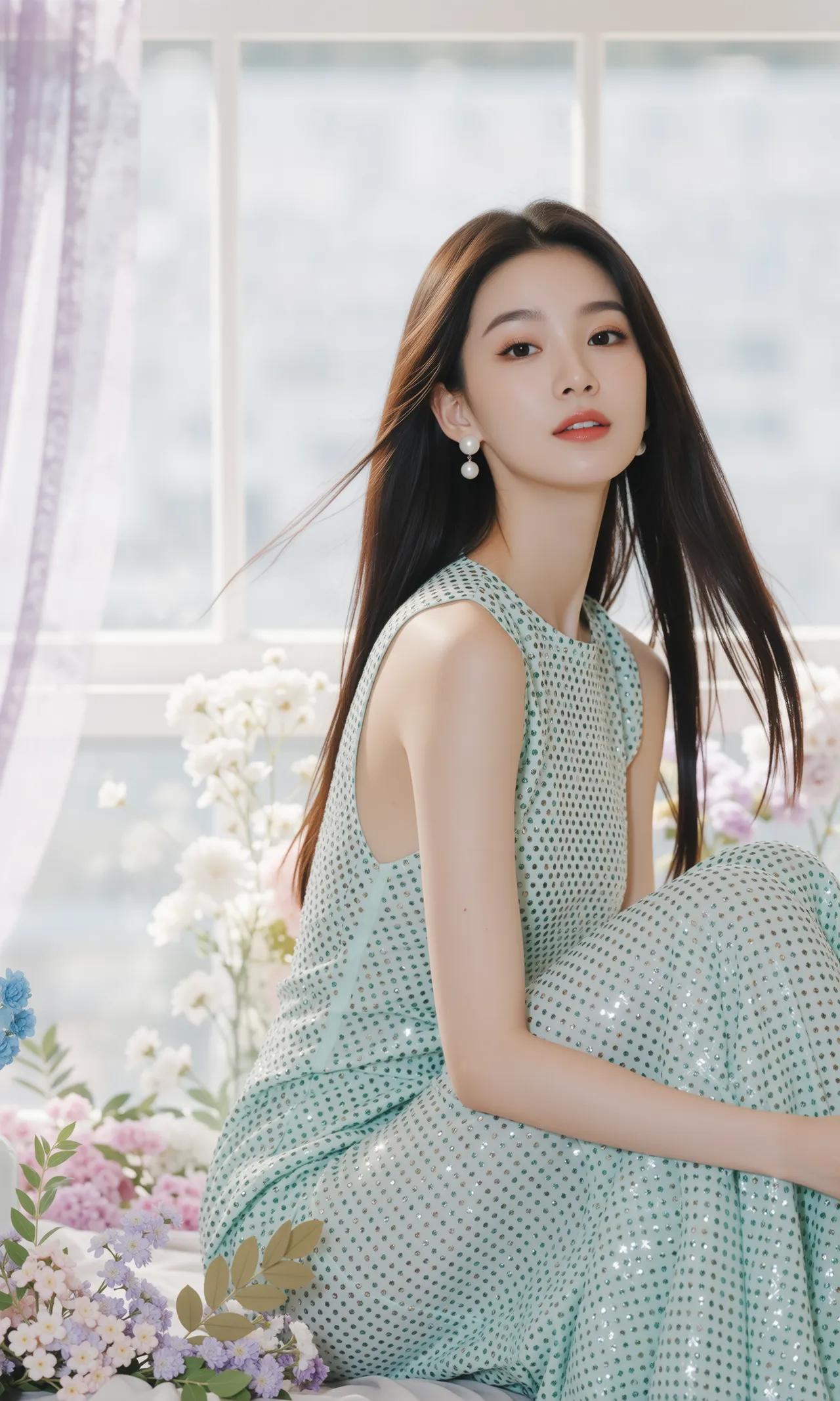 精致的像ai做出来的一样,薄荷女孩 衣服很闪亮,颜色很好看,笑容很婉约 薄荷色