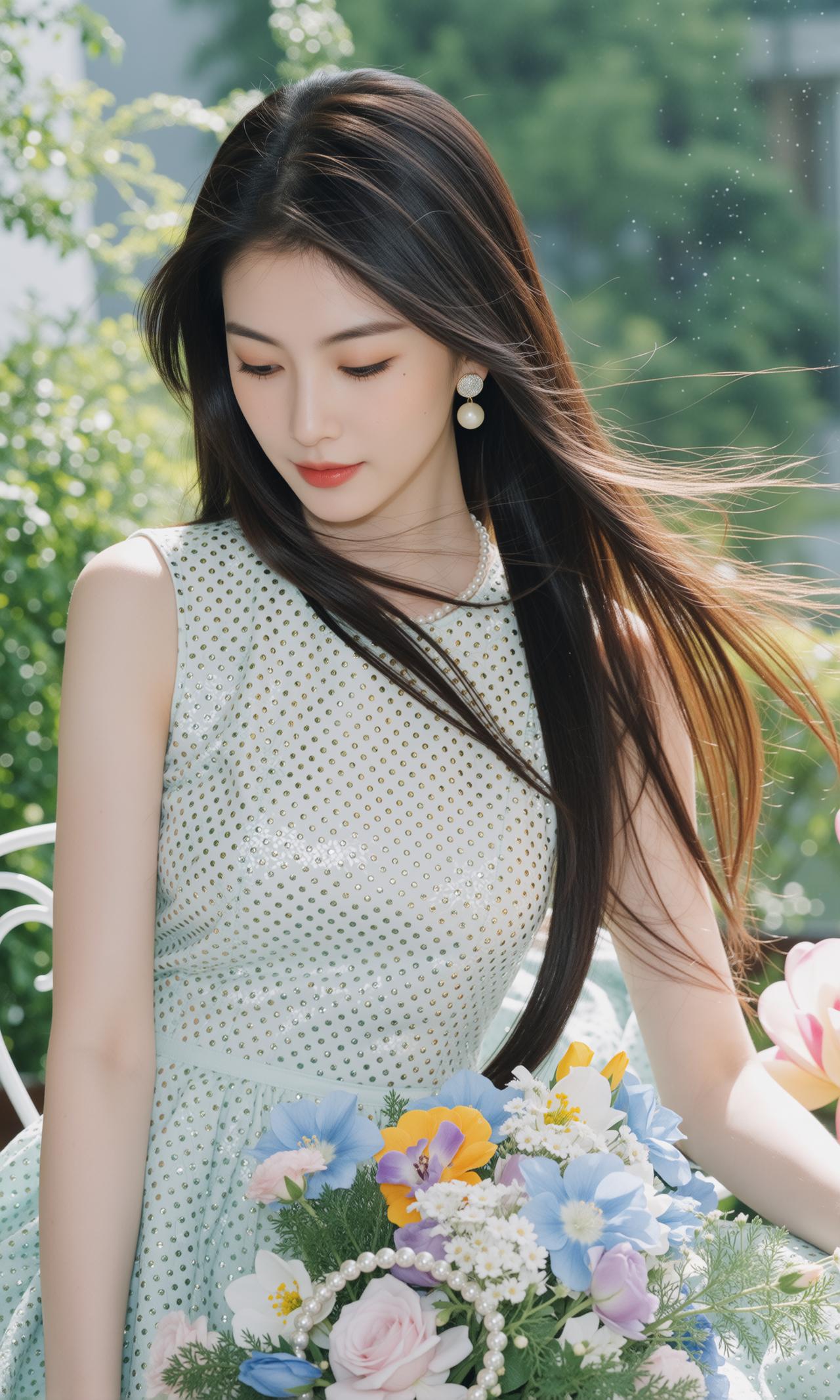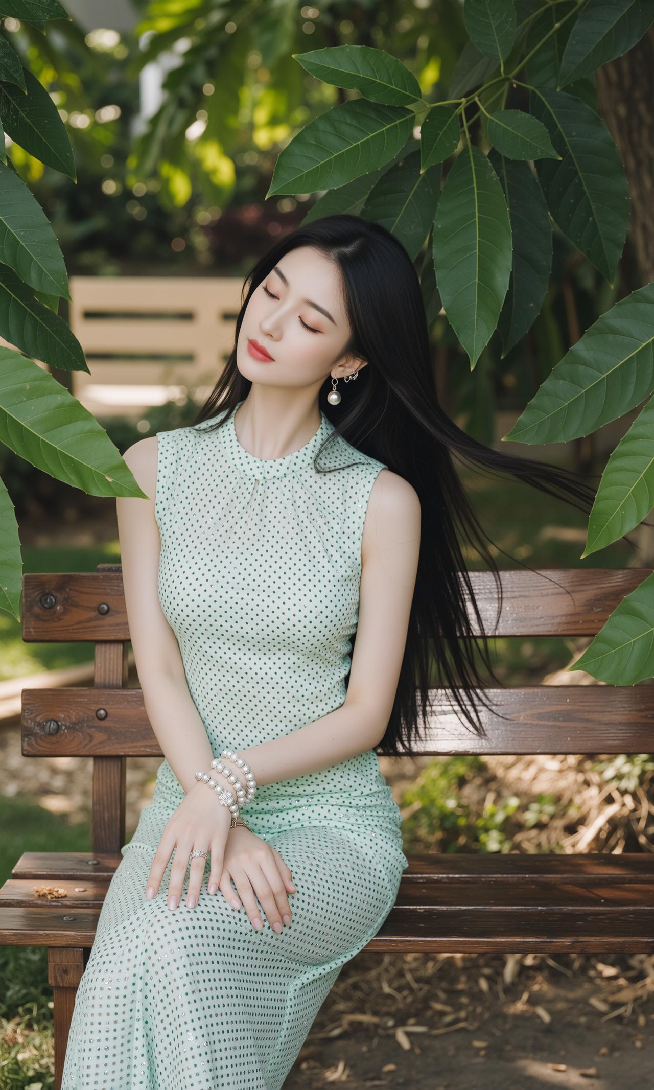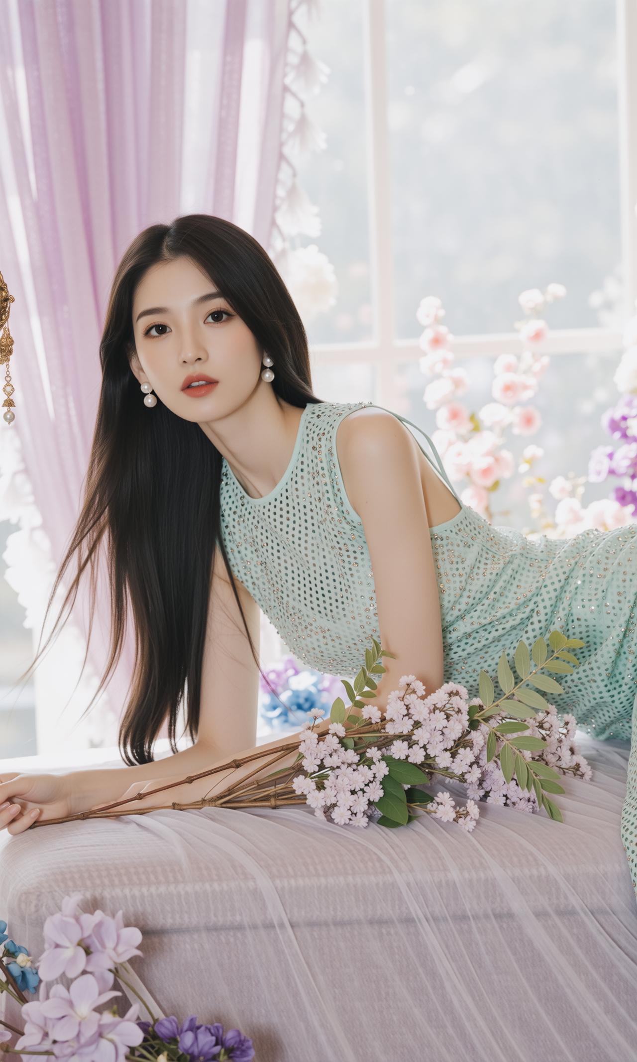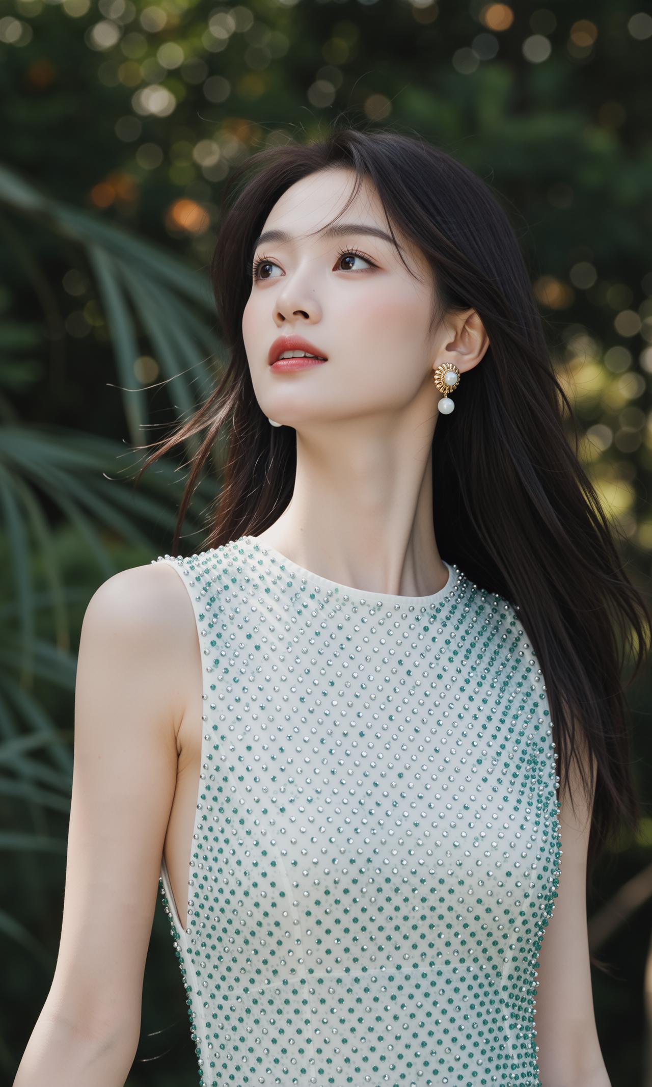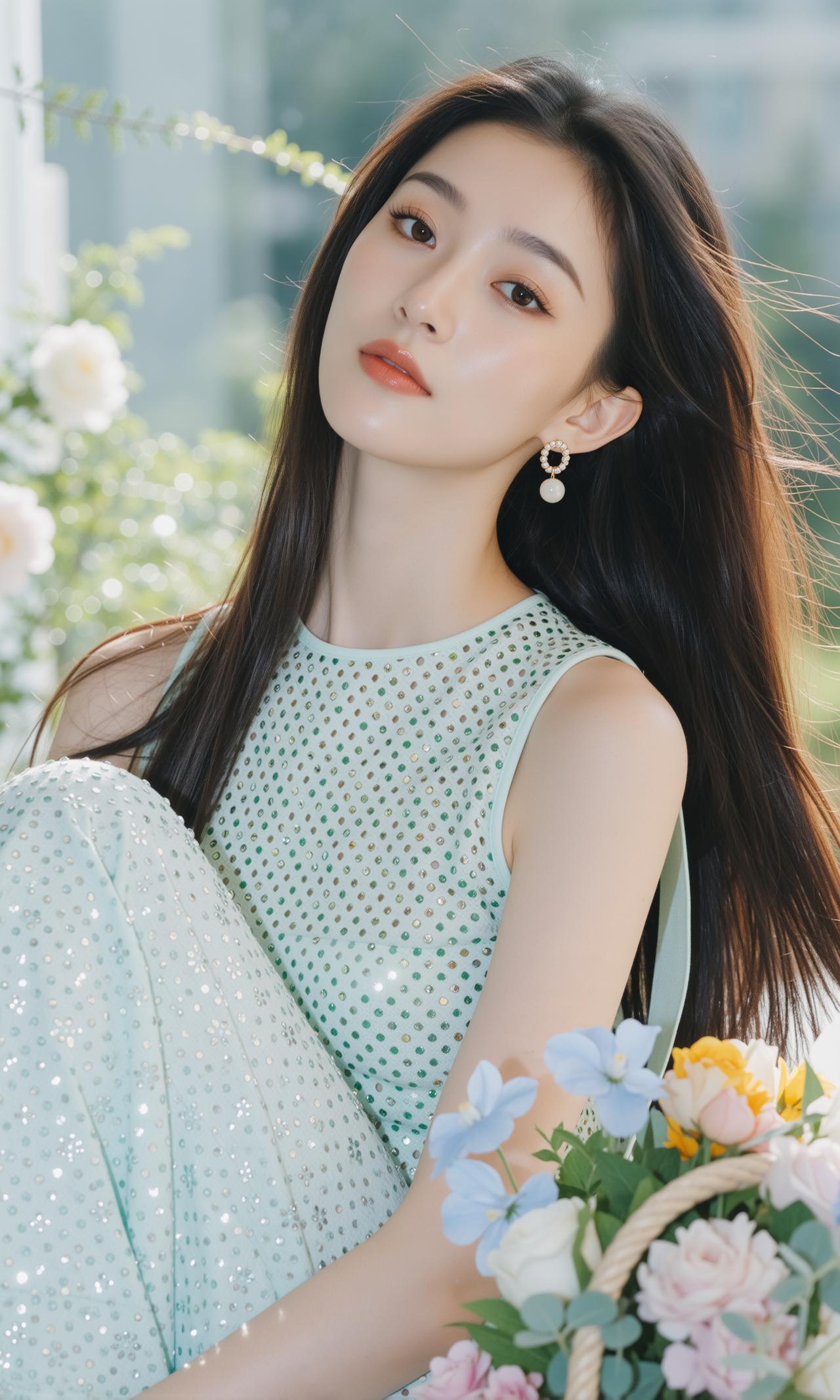 精致的像ai做出来的一样,薄荷女孩 衣服很闪亮,颜色很好看,笑容很婉约 薄荷色
