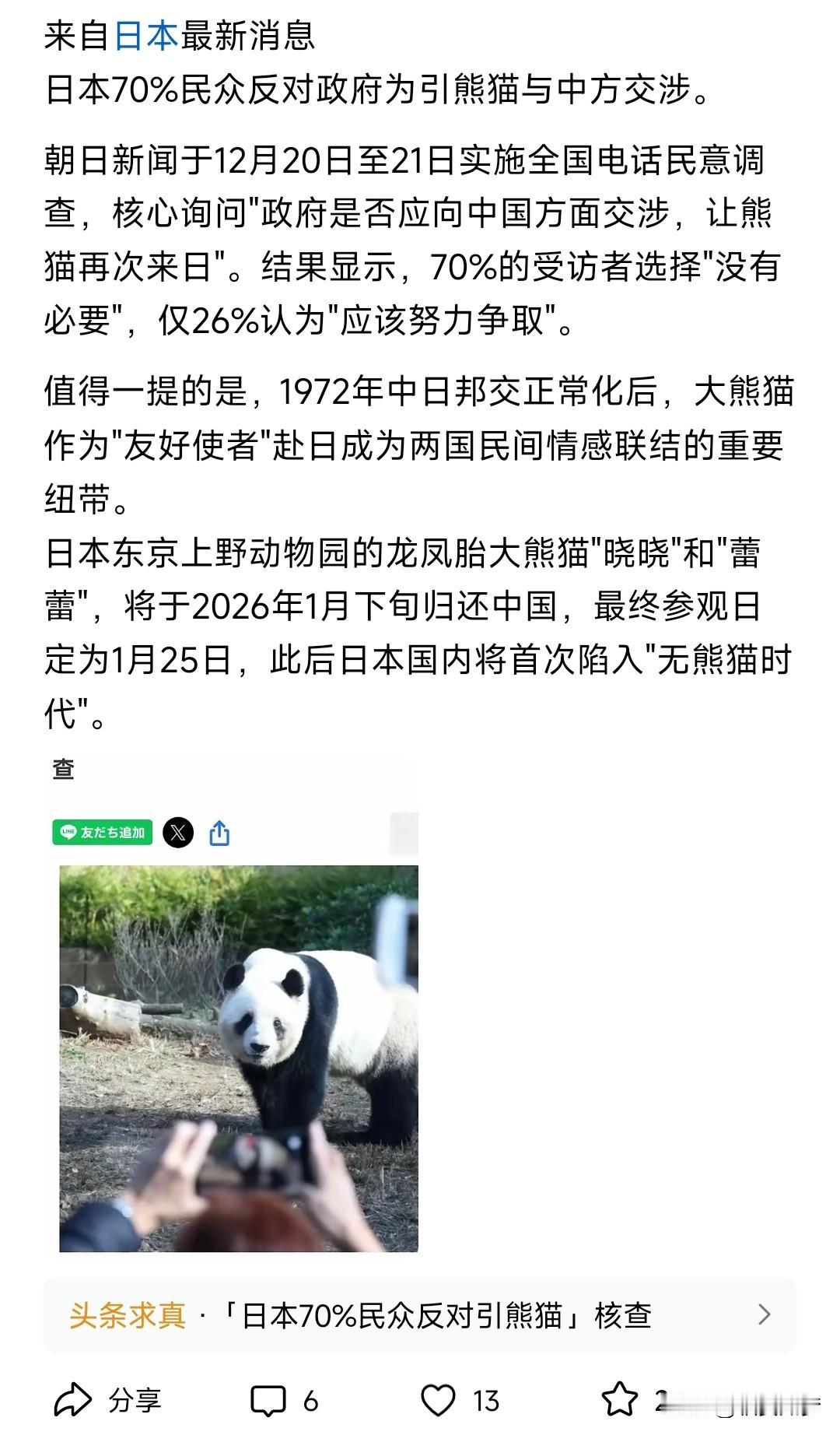 我个人觉得还是应该把熊猫留在日本比较好。 首先,经济价值。 熊猫是我们租给日本的,每年都会有租租金收入。接回来租金没了国内还要付出不菲的饲养费用。此消彼长,赚的钱少了花的钱多了,最后谁买单? 其次,做人留一线。两国总归还是邻居,随着美国撤出亚太,两国关系大概率会回暖。