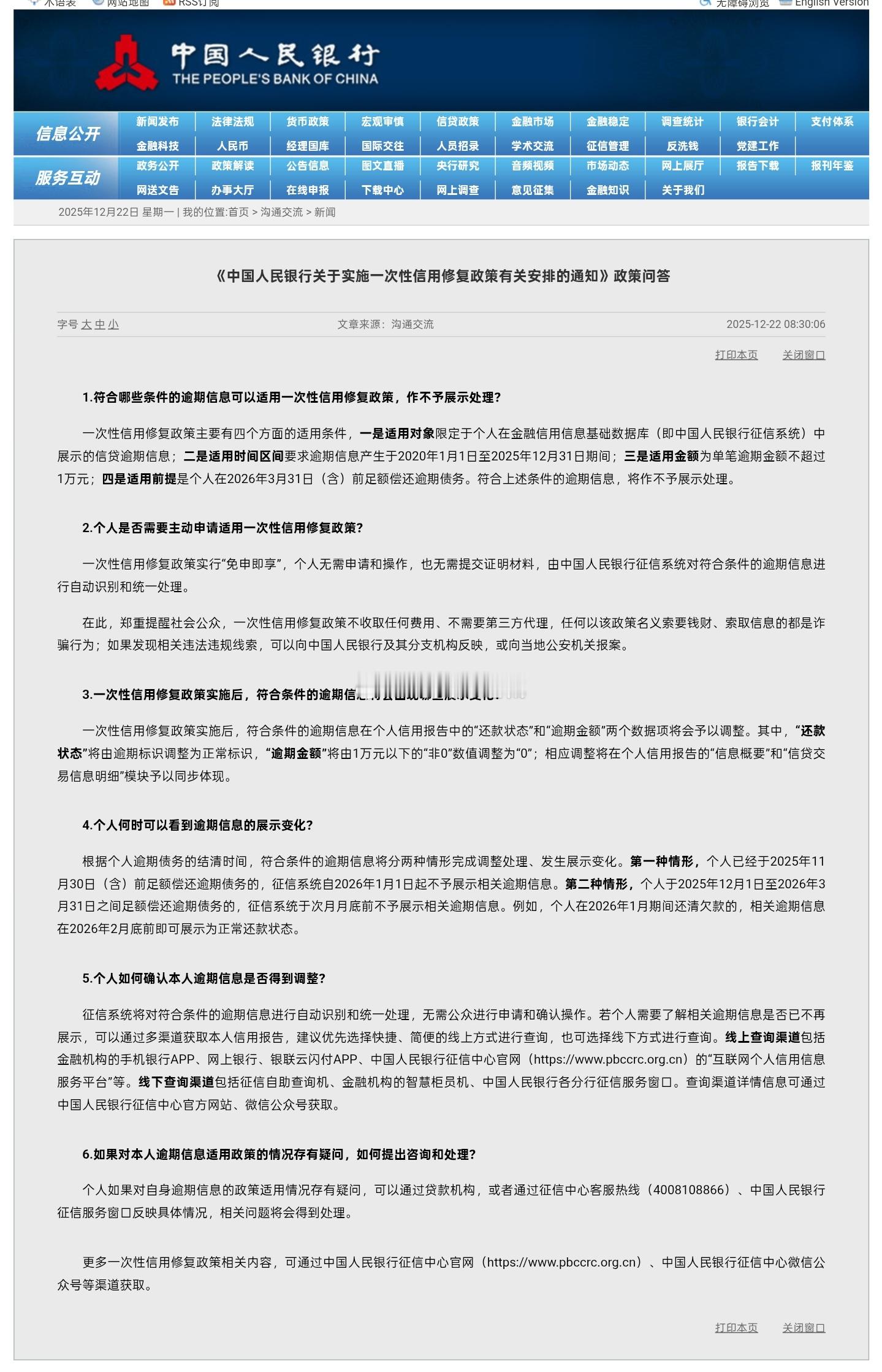 一次性信用修复个人无需申请央行发布关于实施一次性信用修复政策有关安排的通知。通知提到,对于2020年1月1日至2025年12月31日期间,单笔金额不超过10000元人民币的个人逾期信息,个人于2026年3月31日(含)前足额偿还逾期债务的,金融信用信息基础数据库将不予展示。