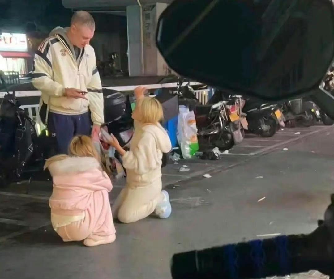 站起来!别跪!丢了中国人的尊严! 路人拍到两个精神小妹向外国人下跪。她俩腿部没有病患,前一秒还站得笔直,下一秒啪就跪下了,看样子像是要联系方式,而且大有不给就跪着不起的态势。 不知道父母看到这一幕会是什么心情,这十几年白养了。女孩要自爱,不要物化自己,贬低自己的人格。越是依附于别人,越没人看得起自己!