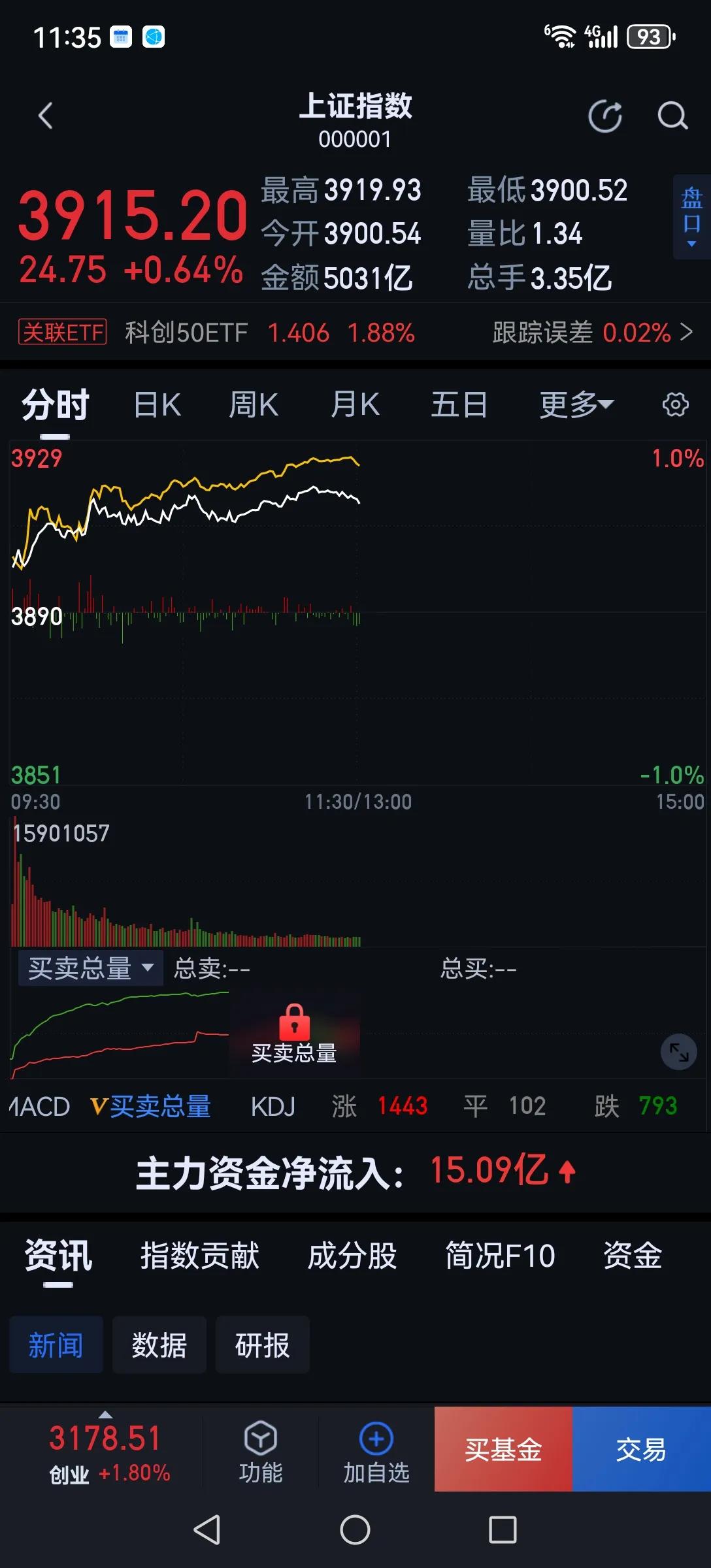 外围大涨,A股小涨。今天上午A股虽然上涨,但涨幅明显低于外围股市(日、韩股市涨近2%)。证明年未资金进场意愿不强,部分资金有落袋为安的倾向。希望A股能奋起直追,迎头赶上,不要再让股民失望。