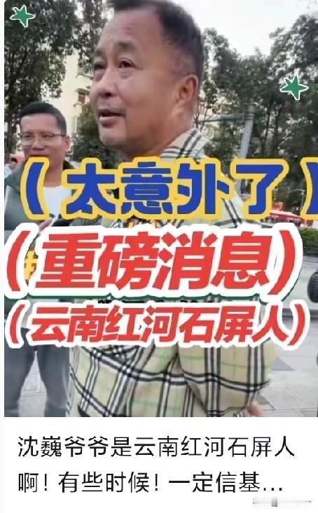 上海大师沈巍的爷爷是云南石屏人!有人发布重磅消息,还发布视频以证明,视频中确实沈