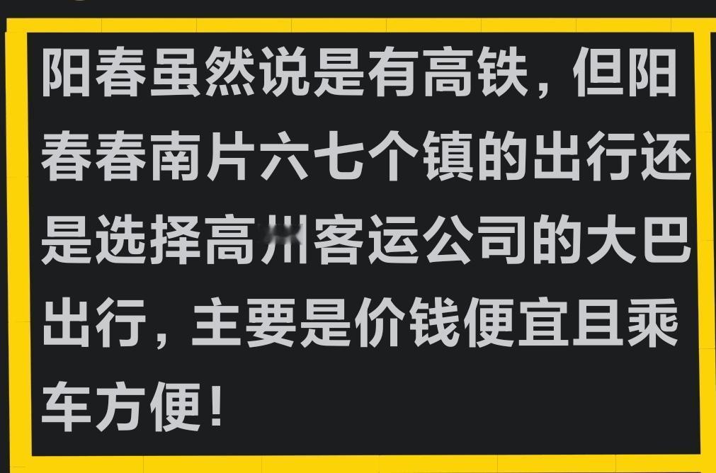 这的确是真的。 以前在没有高铁、仅有三茂客运慢车通行的时期,阳春南片人的出行,像阳春沿线的春湾、合水、潭水,三甲、八甲、双滘,春城镇等地的人们,都是喜欢早早在公路边,等候搭乘高州长途班车,既便宜又便捷! 如今阳春通了高铁,阳春人出行的格局大大改善了,有了高铁,相信搭乘长途车的阳春人,将会是大幅减少的!