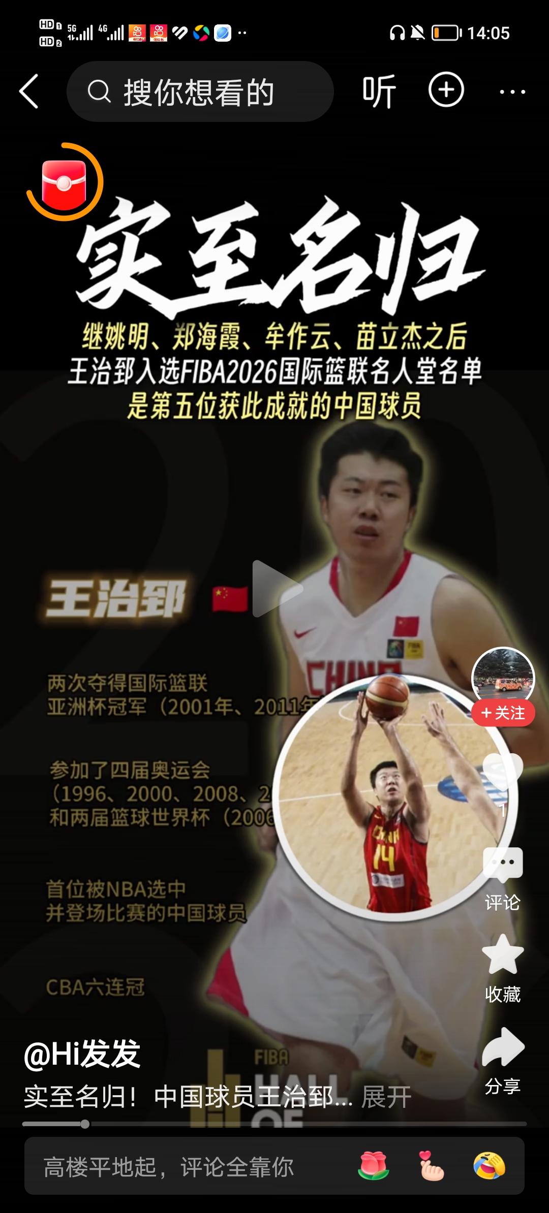 中国篮球的好消息:王治郅入选2026年国际篮联名人堂。 王治郅当年被誉为追风少年,他是最早成功登录美国NBA的中国篮球运动员,他为后来者登陆NBA开辟了一条路。 王治郅参加过四届奥运会; 两届世界杯; 两夺亚洲杯冠军, 在CBA获得六连冠。 是继牟作云、郑海霞、姚明、苗立杰之后第五位入选国际篮联名人堂的中国球员。王治郅 篮球界真相 2025名人堂 篮球史排名 NBA中国新秀 篮球历史排名 体坛名人堂 三入名人堂 名人堂纪录片 仰望名人堂