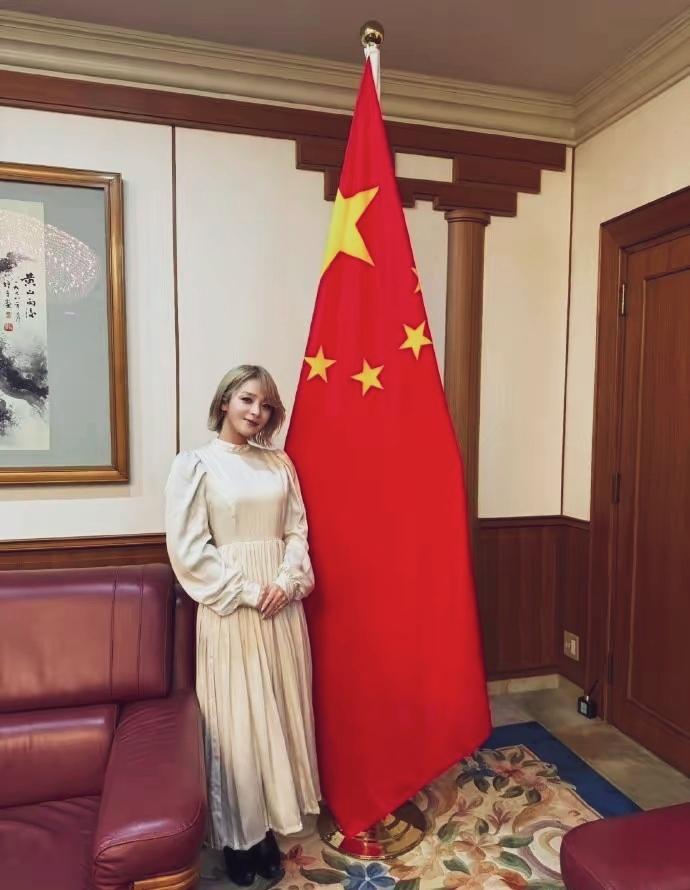 与高市不同,当红歌星美依礼芽拜访了中国驻日本大使馆,并在五星红旗下留影…