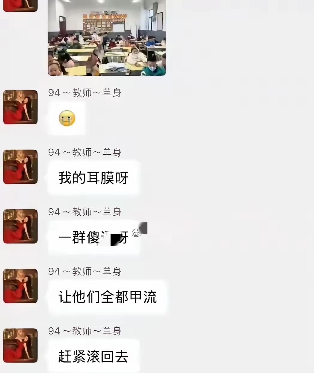 铜川高新实验学校音乐老师李思瞳出名了,在微信区里不仅骂学生,而且还诅咒他们全都“得甲流”,面对别人的劝说更是叫嚣“我有编制”,意思就是有免死金牌,这点小事开除不了她。 不知道学生是怎么伤害这位李思瞳老师了,可能就是因为这些孩子唱歌难听,或者是说话的声音比较大,所以她觉得耳朵受不了,在单身交友群里吐槽。 可能她觉得自己在这样一个大家都陌生的群里吐槽自己的工作,别人不会管闲事,发泄一下内心的不满情绪。 可能是她的怨气太大了,骂的太难听了,更是诅咒学生们得甲流,直接让人看不惯,发到了网上。 李思瞳老师对于网友们的劝说并不害怕,她自己说的就是工资到手了就行,自己不管这些孩子。 她说自己是有编制的,是吃国家饭的,不会被开除,所以不害怕。 她觉得孩子不是她自己的,所以成绩好坏和她没关系。 更叫嚣劝说着赶紧举报,希望把自己调到更轻松的岗位,“光拿工资不干活”! 因为她有编制,学校开除不了她,教体局也不能开除她。 李思瞳言论曝光以后,有网友找出了她的社交媒体账号,发现她的格言就是“不知道意外和明天哪个先来,所以做自己喜欢的事”。 看来她的内心就是不喜欢孩子,就是为了铁饭碗才考的编制。 目前李思瞳的事情已经被举报了,当地教体局已经介入调查,她已被停职,教体局正研判后续处理。 这样的老师有必要留下吗?她能不能被开除教师队伍呢?
