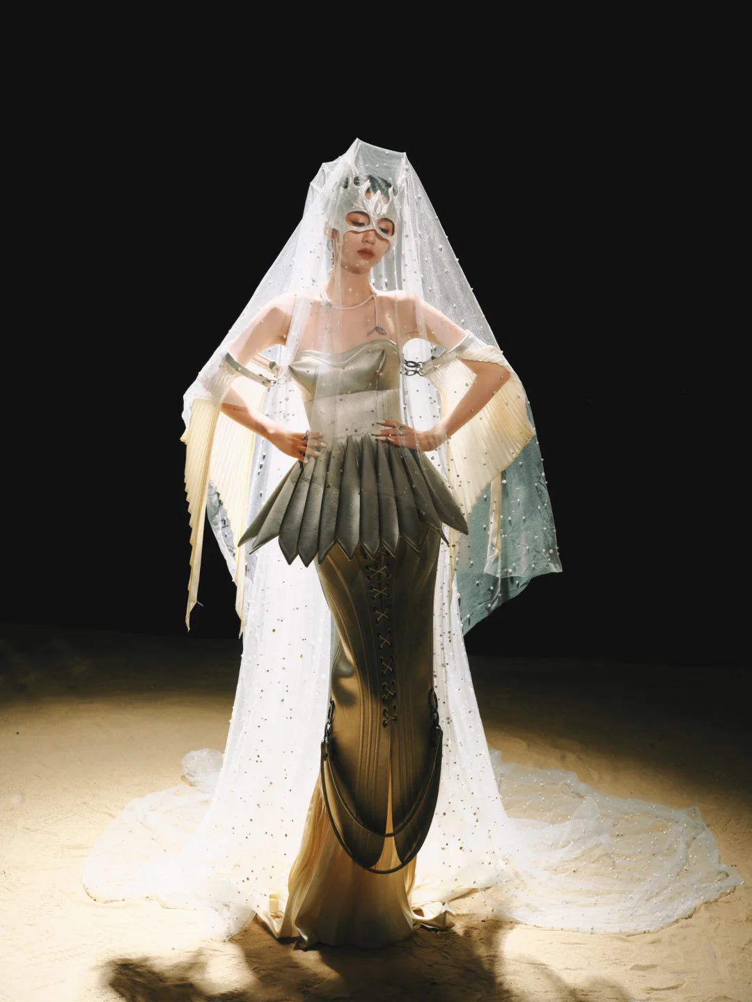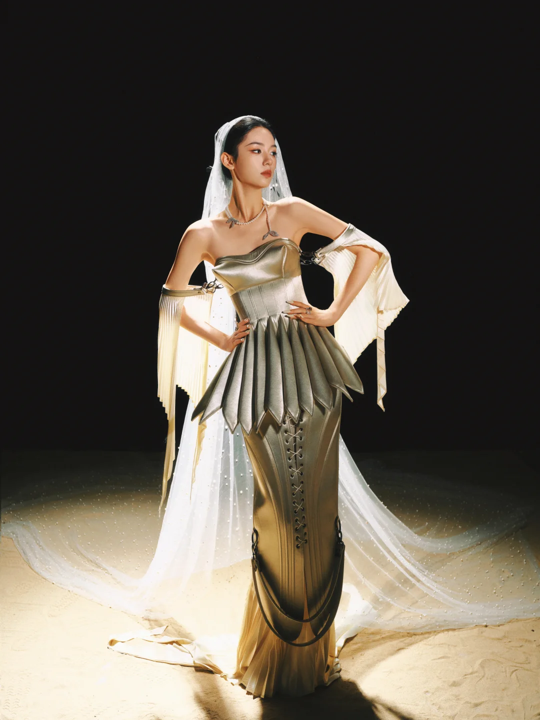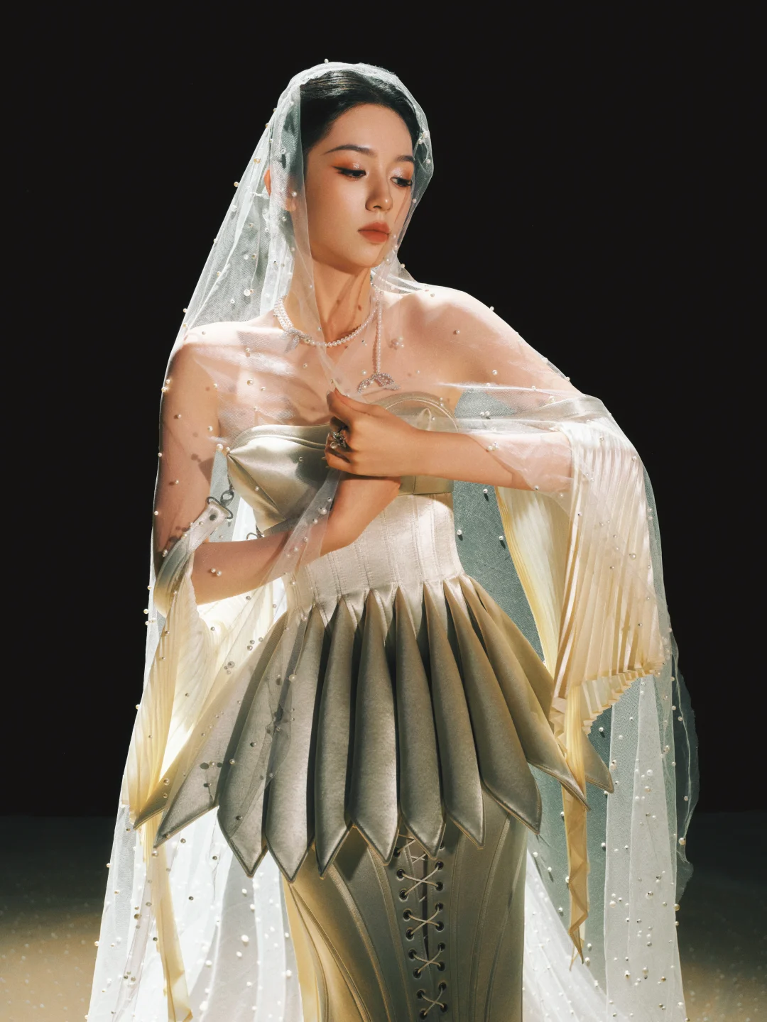 周也今日红毯造型,来自Robert Wun 2024春夏高级定制的系列,好特别的一套!