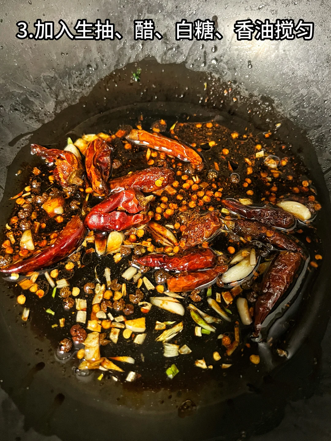3、料汁的比例可以根据自己的口味调整,喜欢酸一点就多加点醋,喜欢辣就多放几个干辣椒。