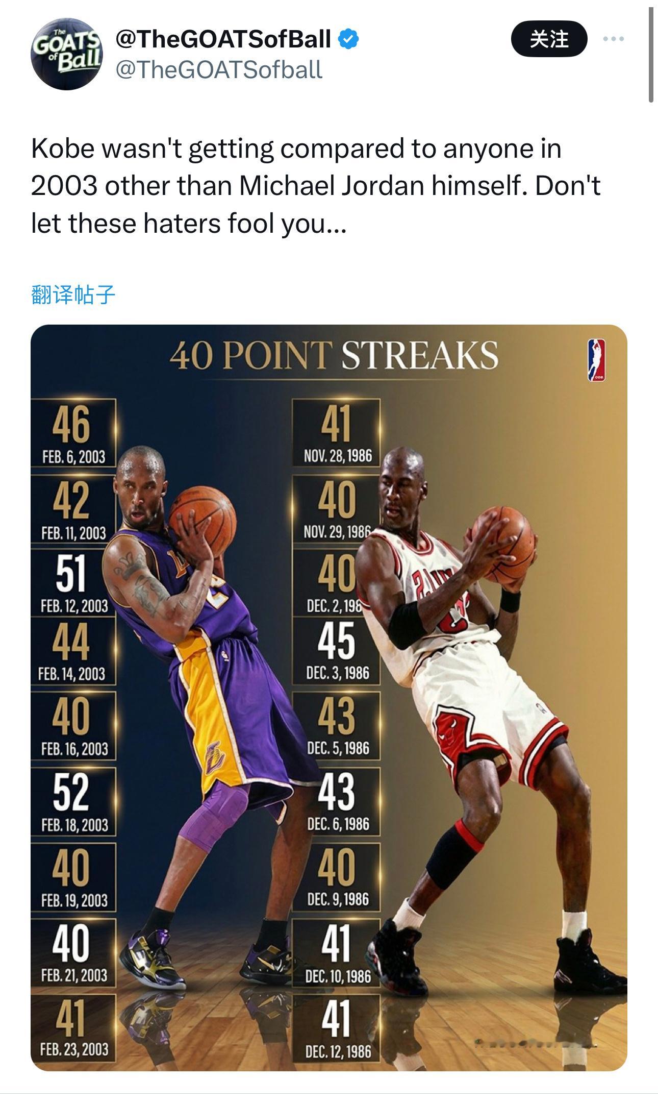 2003年,科比除了迈克尔·乔丹之外,几乎没人拿他跟其他人比较。别被那些黑子骗了……
