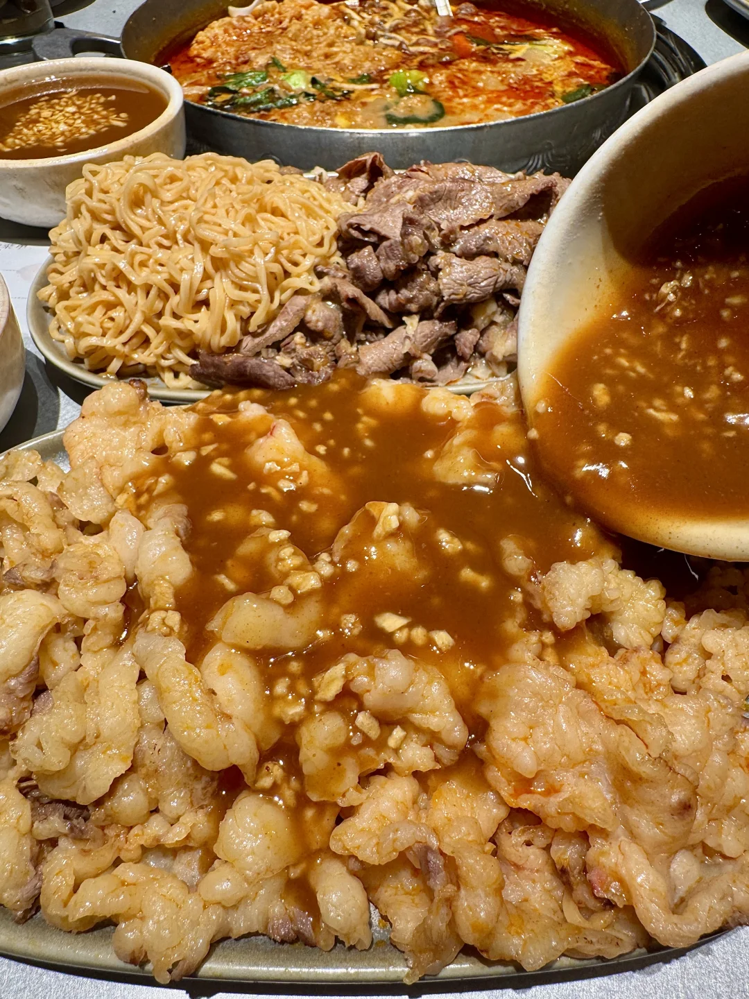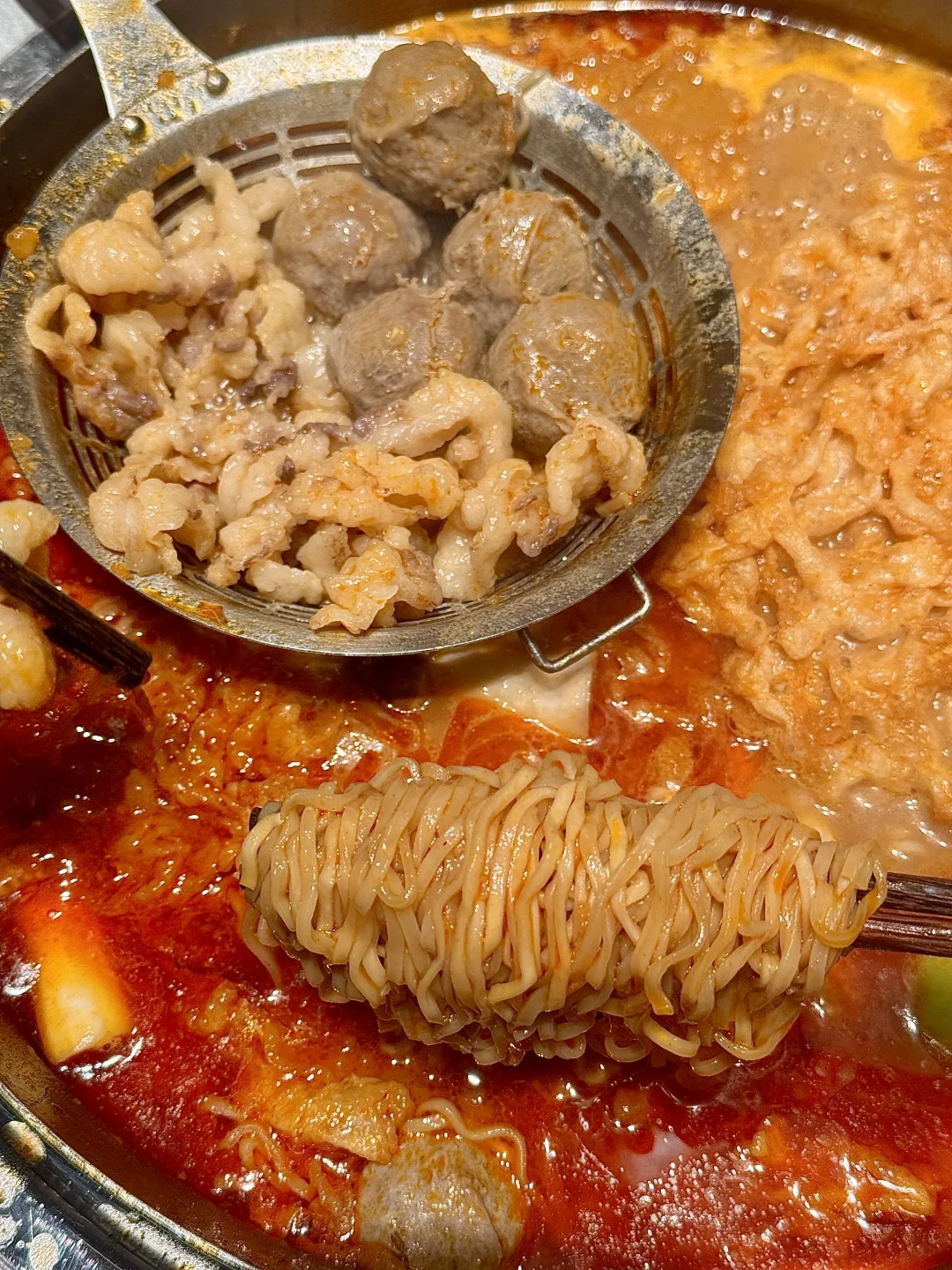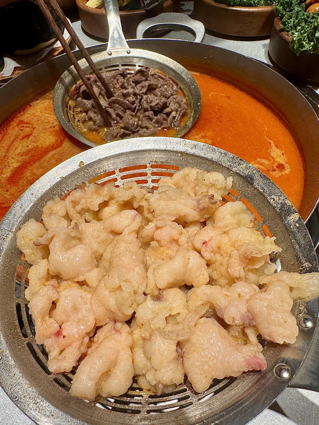 杭州顶顶好吃的沙茶牛肉火锅🍲 非遗沙茶锅都是桌边现炒的,涮啥都好吃! 还有闽南醒狮黑芝麻花生汤🥜点睛仪式满满~
