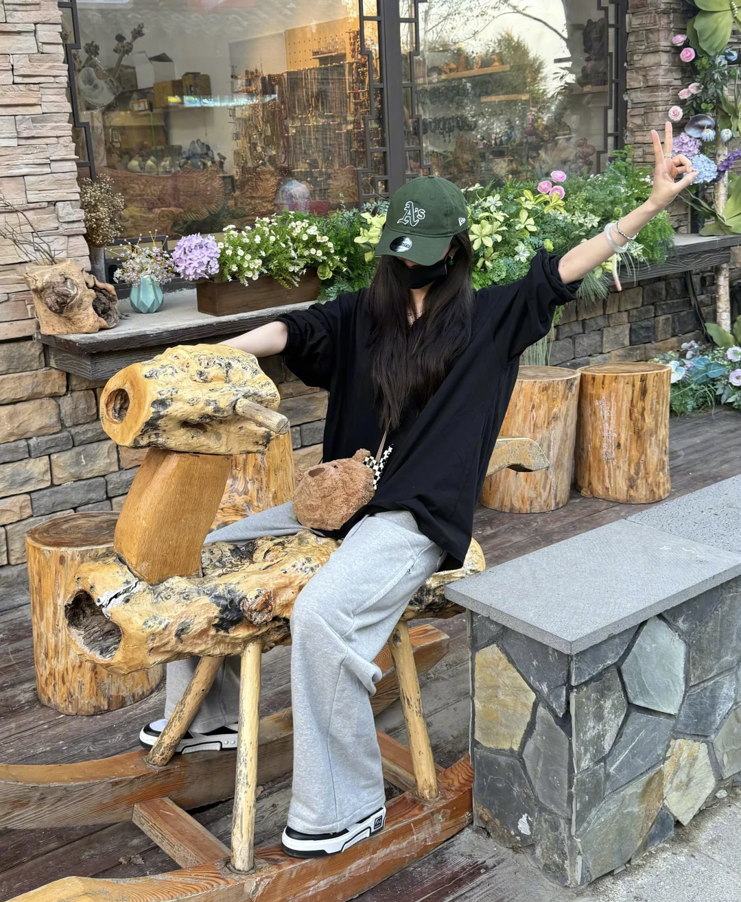舒淇和冯德伦冬至日跟朋友聚餐,舒淇穿着黑色卫衣、破洞牛仔裤,戴着红色的棒球帽,